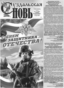 общественно политическая газета УЗДАЛЬСКАЯ № 12 (12687) пятница, 20 февраля 2026 г. 5 ПОЗДРАВЛЕНИЯ УВАЖАЕМЫЕ ЖИТЕЛИ И ГОСТИ СУЗДАЛЬСКОГО РАЙОНА! Компания ООО «Промрукав» поздравляет вас с Днем защитника Отечества! День защитника Отечества – один из самых важных праздников в истории и культуре нашей страны, ведь именно благодаря нашим воинам, которые отстаивают интересы государства, сохраняются традиции и ценности нашей Родины. Мы храним память о героях, которые поколение за поколением доказывали свою доблесть и проявляли мужество и отвагу, защищая суверенитет нашей страны и тех ее граждан, кто особенно нуждался в помощи. Сегодня этот подвиг повторяют наши бойцы в зоне специальной военной операции, самоотверженно достигая поставленных боевых задач. Мы преклоняемся перед их смелостью и ждем бойцов домой живыми и здоровыми. Вносят свой вклад в защиту интересов Родины и те, кто трудится в тылу: развивает промышленность, медицину, образование и другие важные для государства сферы. В этот замечательный праздник желаем каждому защитнику Отечества достижения своих целей, семейного счастья и уюта, здоровья и поддержки близких. Коллектив ООО «Промрукав». УВАЖАЕМЫЕ ЖИТЕЛИ СУЗДАЛЬСКОГО РАЙОНА, РАБОТНИКИ ПРЕДПРИЯТИЙ АО «СУВОРОВСКОЕ», ООО « СТАРОДВОРСКИЙ»! Сердечно поздравляю всех мужчин с праздником — Днем защитника Отечества! 23 февраля - мужской праздник, так уж у нас принято. В этот день мы вспоминаем наших отцов и дедов, братьев и друзей, которые воевали в Великую Отечественную, прошли Чечню и Афганистан, другие горячие точки. Сейчас многие участвуют в специальной военной операции, отстаивая интересы России. И наша задача – помогать бойцам переносить все сложности военного времени, что наши предприятия – АО «Суворовское» и ООО «Стародворский» и делают, участвуя в сборе гуманитарной помощи для фронта и наших солдат. Родину защищать, быть надежной опорой для государства и народа, для своих родных и близких, быть готовым в любой момент дать отпор нашим врагам - самая почетная миссия. Всем защитникам Отечества хочу пожелать крепкого здоровья, бодрости духа, душевного тепла в кругу семьи, благополучия, успехов в работе. Чтобы никакие преграды на помешали достигнуть поставленной цели в жизни, а рядом были верные друзья, готовые всегда придти на помощь. ВСЕМ НАМ - ЧИСТОГО МИРНОГО НЕБА НАД ГОЛОВОЙ И СКОРЕЙШЕЙ ПОБЕДЫ! Сергей ТРУТНЕВ, генеральный директор АО «Суворовское», ООО «Стародворский», член Общественной палаты Суздальского района. УВАЖАЕМЫЕ ВЕТЕРАНЫ СПЕЦИАЛЬНОЙ ВОЕННОЙ ОПЕРАЦИИ! Филиал фонда «Защитники Отечества» по Владимирской области поздравляет вас с Днем защитника Отечества! Желаем вам крепкого здоровья, мирного неба, надежного тыла и благополучия. Пусть гордость за совершенные подвиги согревает сердце, а впереди ждут только победы и счастливые дни! Этот праздник - олицетворение патриотизма, благородства и отваги, неразрывной связи поколений, преемственности и традиций. Спасибо за ваше безграничное мужество, стальную волю и верность присяге. Вы – пример истинной доблести. Юлиана ИВАНИНА и Анна ШИРЯЕВА, социальные координаторы филиала фонда «Защитники Отечества» по Суздальскому району. С ПРАЗДНИКОМ! Работники ООО «Племзавод «Нива» поздравляют жителей Суздальской земли с всенародным праздником — Днем защитника Отечест