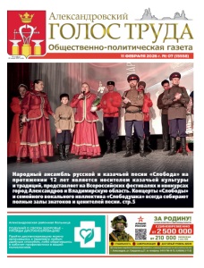 11 ФЕВРАЛЯ 2026 г. № 07 (15558) Основана 10 июня 1917 года Народный ансамбль русской и казачьей песни «Слобода» на протяжении 12 лет является носителем казачьей культуры и традиций, представляет на Всероссийских фестивалях и конкурсах город Александров и Владимирскую область. Концерты «Слободы» и семейного вокального коллектива «Слободушка» всегда собирают полные залы знатоков и ценителей песни. стр.5