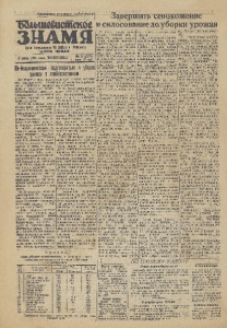 Большевистское знамя Орган Петушинского РК ВКП(б) и Райсовета депутатов трудящихся Пролетарии всех стран, соединяйтесь! Завершить сенокошение и силосование до уборки урожая 8 июля 1951 года, ВОСКРЕСЕНЬЕ №33 (2137) цена 15 коп. П о- бо льше вис тс к и п одготовит ься к уборке уроажя и хлебзаоготвкма Дни уборки урожая зерновых приближаются. Сухая погода содействует быстрому процессу созревания хлебов. Встает неотложная задача—по- большевистски подготовиться к уборке зерновых и сдаче хлеба государству. Только за последние месяцы наш район дополнительно получил 10 тракторов «ХТЗ», 5 прекрасных машин «ДТ—54», 5 самоходных комбайнов, Сложные молотилки. Если добавить к их числу имевшиеся уборочные машины в МТС, то можно представить ту большую помощь, которую оказывает государство сельскому хозяйству. В Старо-Петушин- ской МТС, имеется 11 жнеек. К тому же в наших колхозах имеется 31 жатка, 47 молотилок, много сортировок, веялок. Во дня того, чтобы выжать мз техники максимальную производительность, ее надо в самый короткий срок, оставшийся до уборки, привести в полную боевую готовность. А действительность говорит что многие машины еще не отремонтированы, Машинно- тракторные станции еще не закончили ремонт 4 сложных молотилок, 3 комбайнов и пяти жнеек. Из 31 колхозных жнеек отремонтировано 17. Сельхозартели «Верный путь», «Вперед», имени Ворошилова, имеющие по 2--3 таких машивы, не приступали к их ремонту. Также неудовлетворительно обстоит дело с ремонтом молотилок. Сельхозартели имени Сталина, «Вперед», «Победа», Дарио новского сельсовета и другие не отремонтировали 27 цолотильных машин. Иредсто- щт в ближайшие дни закончить ремонт многих других машин. Оттяжка с ремонтом жнеек, молотилок и других машин, кроме вреда, принести не может. Поэтому правлениям колхозов надо в самый короткий срок устранить эти серьезнейшие недостатки. Но не только машины будут решать успех дела. Все навесы, тока, зернохранилища, транспортные средства, подстилки, тара должны быть приведены в должный порядок. Особенно большое внимание должно быть уделено подготовке зерносушилок и особенно типовых. Жизнь показала, что они играют большую роль в деде успешного выполнения плана хлебозаготовок. За счет их нормальной работы колхозы экономят десятки тысяч рублей, рабочую силу. Успех уборки будут решать кадры. Своевременно подобрать и подготовить водителей комбайнов, жнеек, лобогреек и других специалистов—неотложная задача МТС и колхозов. Партийные и советские организации, специалисты сельского хозяйства должны помочь правлениям колхозов составить рабочие планы уборки хлебов, предусмотрев в них высокопроизводительное использование техники, использование всех резервов колхозов и МТС, расстановку сил для проведения уборки хлебов в сжатые сроки и без потерь. Своевременное завершение подготовки к уборке урожая и заготовкам МТС и колхозами будет надежным залогом быстрой косовицы, обмолота хлебов без потерь и досрочного выполнения плана хлебозаготовок. Долг партийных и советских организаций состоит сейчас в том, чтобы широко развернуть социалистическое соревнование между механизаторами, кузнецами и другими колхозниками и колхозницами, занятыми на подготовке к уборке и хлебозаготовкам. По-большевистски подготовимся к уборке урожая и хлебозаготовкам. С В О Д К А хода уборк