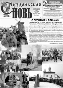 Газета основана 21 марта 1918 г. № 13 (12688) среда, 25 февраля 2026 г. Общественно политическая газета 12+ С ПЕСНЯМИ И БЛИНАМИ ЗИМУ ПРОВОЖАЛИ, ВЕСНУ ВСТРЕЧАЛИ Масленицу всегда любили на Руси — праздник веселый, озорной, отчаянный. На Масленицу, прощаясь с зимой, встречали весну, жгли чучело Масленицы. И, конечно, пекли и ели блины. Масленицу повсюду ожидали с большим нетерпением. Это был поистине всенародный праздник. В Суздале гуляния развернулись в Музее деревянного зодчества. Здесь, как всегда, было весело, аутентично и креативно: был масленичный поезд - карнавальное шествие с ряжеными, песнями и плясками, интерактивные площадки с народными играми, было взятие снежного городка. А на ярмарочной площадке можно было полакомиться блинами с разными начинками, с медом, вареньем, со сметаной. Для юных гостей были организованы мастер-классы. Весь праздник сопровождался выступлениями ярких фольклорных коллективов. Атмосфера праздника была просто необыкновенной! Весело, радостно, вкусно было и на Торговой площади Суздаля. Здесь ели блины, пели, плясали, водили хороводы, а потом торжественно сожгли чучело Масленицы под всеобщее ликование и колокольный звон. Прощай зимушка-зима, здравствуй, весна-красна! Будем ждать добрых вестей и хороших перемен. Фото М.Авсеенок и С. Колбиной. В минувшие выходные в Суздале и в селах Суздальского района прошли Масленичные гуляния. Люди дружно закликали весну, пекли блины, ходили в гости, прощались с зимой. Справки по телефону 8 (49231) 2-08-95. ПОДПИСКА НА ГАЗЕТУ «СУЗДАЛЬСКАЯ НОВЬ» НА 1-е ПОЛУГОДИЕ 2026 ГОДА Реклама ОФОРМИТЬ ПОДПИСКУ МОЖНО В РЕДАКЦИИ по адресу: г. Суздаль, Красная пл., д.1, каб.12,18. СТОИМОСТЬ ПОДПИСКИ НА 6 МЕСЯЦЕВ: с получением в редакции - 450 руб. с доставкой на дом - 550 руб. (г. Суздаль, не менее 5 экземпляров); по району - 600 руб. УВАЖАЕМЫЕ ЖИТЕЛИ ПОСЕЛКА КРАСНОГВАРДЕЙСКИЙ, СЕЛ ПАВЛОВСКОЕ, ПОРЕЦКОЕ, ОМУТСКОЕ! Сообщаем вам, что у редакции есть возможность доставлять вам газету «Суздальская новь». Подписаться на газету можно в Красногвардейской сельской библиотеке у библиотекаря Сараевой Елены Викторовны, в Павловской библиотеке у библиотекаря Татьяны Геннадьевны Васильевой, в с. Порецкое у Галины Александровны Молчановой в магазине, в с.Омутское у библиотекаря Веры Владимировны Савельевой.
