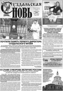 Газета основана 21 марта 1918 г. № 36 (11577) среда, 20 мая 2015 г. Общественно политическая газета В дождливый ветреный день к могиле В.И. Романовского на Златоустовское кладбище в Суздале пришли сотрудники Владимиро-Суздальского музея-заповедника, работники городской администрации вместе с Александром Разовым, представители общественности, жители города, журналисты, местные краеведы. Генеральный директор музея-заповедника Светлана Мельникова рассказала о жизни и деятельности В.И.Романовского на посту первого директора музея, о претворении в жизнь идеи увековечить память о нем.После долгих поисков, нашли внучку В.И.Романовского. Она приехала на открытие памятника из Твери и поделилась воспоминаниями о своем деде. Василий Иванович Романовский (1873-1945) родился в семье известного в губернии врача Ивана Васильевича Романовского, окончил историко-филологический факультет Московского университета, преподавал во Владимирской женской гимназии русский язык и литературу, был членом губернской учёной архивной комиссии. Позднее работал инспектором начальных училищ Московского учебного округа. Основал в Москве Педагогический музей. С 1913 по 1917 г. был директором русских учебных заведений княжества Литовского. Романовский был награждён Орденами Св. Станислава и Св. Анны III степени. В Суздаль Василий Иванович приехал в 1921 году, преподавал и одновременно работал в музее до 1931 г. директором, затем старшим научным сотрудником. Именно благодаря ему в Суздале появился музей и были спасены многие ценности – их сегодня можно увидеть в экспозициях. Глубокие знания и большая эрудиция помогали В.И. Романовскому отстаивать в самые богоборческие годы спасать от разрушения церкви и монастыри Суздаля. Умер он в январе 1945 г. После смерти о Василии Ивановиче Романовском незаслуженно забыли. Почти до конца XX века первый директор музея оставался в тени последующих. Вновь заставил заговорить о В.И. Романовском журналист и краевед Ю.В. Белов, когда на страницах газеты своей газеты «Вечерний звон» написал о подвижничестве, честности и незаурядности основателя и первого директора Суздальского музея. И не только заговорить, но вновь осознать величину личности человека, который большую часть своей жизни провел в Суздале. И с благодарностью ему поклониться… В последние десятилетия личность Романовского и его деятельность отражены в выставках, экспозициях и научной работе музея-заповедника. Идея поставить достойный памятник Василию Ивановичу в коллективе Владимиро-Суздальского музея-заповедника зародилась несколько лет назад. Сегодня она реализована. Восполнена еще одна страница жизни музея. Теперь в памятные дни музейные работники и общественность города будут иметь возможность возложить цветы к памятнику первому директору Суздальского музея. Павел ПАРАМОНОВ. Фото И.Петровой. 18 мая 1800 г. - дата смерти великого русского полководца. Вот уже несколько лет в с. Кистыш восстанавливается храм во имя св. Василия Великого, построенный Александром Суворовым в память о своем отце Василии Ивановиче. Инициатором этого благого дела является благотворительный фонд "Омофор" во главе с генерал-майором Александром Черкасовым. И все это время идет всенародный сбор пожертвований на восстановление храма. Буквально на днях к этой важной теме внимание россиян привлек перв