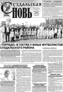 Газета основана 21 марта 1918 г. № 40 (11581) среда, 3 июня 2015 г. Общественно политическая газета В рамках празднования Международного дня защиты детей 1 июня для проведения мастер – класса для юных футболистов Суздальского района была приглашена футбольная команда «Торпедо» г. Владимир. Появление клубного автобуса команды «Торпедо» на улицах г. Суздаля вызвало живой интерес у горожан. Желающих посмотреть на профессиональных футболистов собралось достаточно, в основном, это были дети. Идея проведения мероприятия принадлежит тренерупреподавателю МБОУ ДОД «ДЮСШ» Суздальского района Храмову П.А. – бывшему игроку команды «Торпедо». Отделом по культуре, спорту, семье и молодежной политике администрации Суздальского района было направлено официальное письмо в администрацию ФК «Торпедо» г. Владимир с просьбой о проведении мастер-класса, и праздник состоялся. В рамках мастер-класса были запланированы проведение тренировки для игроков 2006-2007 годов рождения и товарищеский матч с футболистами 1997-1998 годов рождения. Перед началом мероприятия с приветственным словом в адрес юных футболистов обратился председатель районного Совета отцов С.Ю.Родионов. Он выразил большую надежду на то, что кто-то из участвующих в мастер-классе ребят сможет пополнить состав главной команды области. В ходе тренировки, проводили которую полузащитник Илья Зимин и нападающий Валерий Малышев, ребята могли поучиться футбольным секретам. Взрослые подсказывали юным спортсменам, как действовать в той или иной ситуации, старались помочь. Молодежь же со всем своим рвением и спортивным азартом старалась показать на что способна. Несмотря на отсутствие солнца, на футбольном поле было достаточно жарко. Товарищеский матч, не выявив победителя, закончился со счетом 9:9. Судил матч арбитр FIFA Максим Гаврилин, который имеет большой опыт в обслуживании матчей не только российской премьер-лиги, но и матчей европейского уровня. Он с удовольствием принял приглашение на участие в мероприятии, после которого долго общался с ребятами. Юные футболисты расспрашивали Максима об известных футболистах, матчи с которыми ему приходилось обслуживать. По окончании тренировки состоялась совместная фотосессия, после которой все желающие смогли получить заветные автографы. Отдел по культуре, спорту, семье и молодежной политике благодарит футбольный клуб «Торпедо» г. Владимир в лице директора Д.В. Вязьмикина, а также всех игроков команды «Торпедо», принявших участие в празднике. Такое общение и обучение мотивирует ребят развиваться как профессиональных спортсменов. В будущем планируется сделать подобные мероприятия традиционными. Николай КУРАШКИН. «ТОРПЕДО» В ГОСТЯХ У ЮНЫХ ФУТБОЛИСТОВ СУЗДАЛЬСКОГО РАЙОНА Спортивное обозрение 29 мая во Владимире работал III экономический форум «Владимирская область – территориальный центр импортозамещения». В числе его участников - председатель Комитета Государственной Думы по безопасности и противодействию коррупции Ирина Яровая. Она выступила с предложением создать Межрегиональный координационный центр по импортозамещению, объединив возможности и опыт Владимирской и Волгоградской областей, Республики Крым и Москвы. «Таким образом, будут объединены усилия деятельных глав регионов, которые сегодня своим ежедневным трудом опровергают стере
