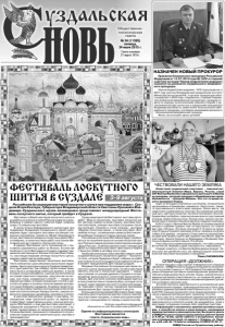 Газета основана 21 марта 1918 г. № 54 (11595) пятница, 24 июля 2015 г. Общественно политическая газета Приказом Генерального прокурора Российской Федерации от 13.07.2015 года № 1403-к старший советник юстиции Чернов Андрей Александрович назначен на должность Суздальского межрайонного прокурора. Чернов Андрей Александрович, 1978 года рождения, в 2001 году окончил Владимирский юридический институт Министерства юстиции РФ, в органах прокуратуры области работает с 2003 года: следователь, старший следователь Собинской межрайонной прокуратуры, прокурор отдела по надзору за исполнением законов о борьбе с организованной преступностью и коррупцией прокуратуры Владимирской области, заместитель Кольчугинского межрайонного прокурора, последняя занимаемая должность – Вязниковский межрайонный прокурор. Женат, воспитывает двоих дочерей. НАЗНАЧЕН НОВЫЙ ПРОКУРОР ЧЕСТВОВАЛИ НАШЕГО ЗЕМЛЯКА Известный суздальский спортсмен – тяжелоатлет, многократный чемпион Мира, Европы, России, стран СНГ Виктор Якубов был официально приглашен в Москву на праздник, который проходил в Измайловском парке. Назывался он – праздник Малины. Это что-то вроде нашего праздника Огурца. Один из 22 видов спортивных состязаний, которые были организованы в Измайлове, назывался «Театр силы». Нашего прославленного атлета ждал сюрприз. Около места, где предстояло соревноваться силачам, был размещен рекламный щит с цветным плакатом. На нем в полный рост был изображен Виктор Якубов с перечислением всех его достижений и наград. И фактически в этом «Театре силы» прошло чествование нашего земляка. Ему были вручены подарки и сувениры. В 2012 году в г. Минске Виктор Якубов установил мировой рекорд в подъеме пудовых гирь за одну минуту. Он поднял две гири 122 раза. Эта была сенсация! И 18 июля на празднике Огурца в Суздале приезжие атлеты-гиревики пытались побить этот рекорд – не удалось! Спортсмен из города Самары Дмитрий Урядов поднял две пудовые гири 86 раз. Другие участники: Никита Калинин из Владимира и Владимир Карпов из Коврова соответственно 70 и 40 раз. Участники этих соревнований заявили, что побить рекорд 83-летнего В. Якубова и даже повторить его, невозможно. Следует отметить, что Виктор Якубов демонстрирует «Театр силы» вот уже 60 лет и его, как «бренд Суздаля» включают в разные массовые программы и праздники. Павел ПАРАМОНОВ. Фестиваль соберёт мастеров лоскутного шитья и их работы из разных уголков России и других стран. Впервые в рамках одного события будут собраны сразу 12 уникальных выставок. В залах Спасо-Евфимьевского монастыря при поддержке Владимиро-Суздальского музея-заповедника будут проходить выставки коллекций старинных российских тканей из Музея Ивановского ситца, выставка антикварных лоскутных одеял XIX в. из Америки, а также выставка работ участников Фестиваля для арт-проекта «Лоскутное поле». В рамках Фестиваля гости познакомятся с выставкой современных работ из Японии. В качестве почётного гостя Фестиваля в Суздаль приедет знаменитая мастерица из Японии госпожа Йоко Сайито, настоящая мировая легенда лоскутного шитья, широко известная во всём мире. Фестиваль представляет несколько выставок, тесно связанных с российскими лоскутными традициями. Центр культуры и досуга Суздаля превратится в пространство, где соберут аутентичные предметы быта и интерьеров советских вр