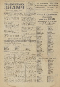 ПРОЛЕТАРИИ ВСЕХ СТРАН, СОЕДИНЯЙТЕСЬ! Большевистское ЗНАМЯ Орган Петушинского РК ВКП(б) и Райсовета депутатов трудящихся ■У/'» <*?» гул 1 * 1 ДВАДЦАТЬ ТРЕТИЙ \ ГОД ИЗДАНИИ Из04 (12122) Ч Е Т В Е Р Г 25 1§ § % § § сентября 1952 г, выходит 2 раза в неделю цена 10 коп. ■УП У/'- -УУ УУ-У У УУ УУ -У, § § § & 22 сентября 1952 года Владимирская IV областная конференция б) закончила свою работу. ИНФОРМАЦИОННОЕ СООБЩЕНИЕ о пленуме областного комитета ВКП(б) нс ко ог2ог 2о I Vсоебнлотбаяслбтарнс ято нг оос ой скптоаомряитлтис ейятнаоп йлВеКкноПунм( фб )еВ, рлеаиндзцибимреаийнр. В п К р П о П П с ( л л ы б е е ) . н н у у т м м о в. и р азбс срма ол т рпеелр в ымо р гс ае нк риез та ца риеомн н оыбе ко вмоа Кидина тарем тов. Киселева АГ. . НА.,, , кома—тов. Новикова Н. П. всте коррые тма рсеемк р ое б т.т.Членами бюро обкома ВКП(б) избраны: Кидин А. Н., Киселев Г. А , Новиков Н. П., Булатов Ф. Гм Дроздецкий П. Г., Монько А. М., Мошаров Я. В,, Махонина В, Ф., Споров В. Я. сВ оКюПзПза(л н б в е ы ) е н д ху т у м о ю и в щ. окибоммк ос ооммтаодВелКльоПс мк( би )х пуатроврте играйднниоылв: х , о бпк ро мо фа Булатова Ф. Г.; ц и изавоебдкуоюмащиВмКПо(тбд)е лтоомв. пропага Рнядбыо ив аа гиГт. а А.; товз. аведующим отделом школ обкома ВКП(б) Петрова Л. В.; ле нзнаовсетдиу юощбик мома оВтКдПе л( бо)м ттоявж. е л о й про Вмоыршоничева Ф. М.; заведующим отделом машиностроения обкома ВКН(б) тов. Яковлева В. В.; носзтаивеодбуюкощмаимВКоПтд(бе)ло тмовл. егкой пПраонмыкошвлеа н Н. Н.; обкзоамваедШуюШщ(ибм) тоотвд.елом транспорта и связи Жаркова Н. Н.; заведующим сельскохозяйственным делом обкома ВКП(б) тов. Степаноовта П. А.; обкзоамваедВуюКПщ(ибм) тоавд.министративным отделом Квашнина А. П„; о т дзеалвоемд уюо бщк иомм а пВлКаЩнобв)о - т отрогво. во - фина нс о вым Нечипоренко оНб. к о оНт м в аее тсВтКвЩенбн)ымтовс.екрегарем партколлегии Бузина П. 0.; заведующим особым сектором обкома ВКП(б) тов. Софронова Н. С.; товр. едактором областной газеты «Призыв» Монько А. М. нз ио йо2 н2I Vн йсоеВнклтоаямдбиир мсясиирсиос кс то оой бя клоообмслаьа с тВнз Као сйЩе дбап) н, а ир ите из бйррнеаовнйи к о нПфреердеснецдиаетйе. л е м ревизионной комиссии избран тов. Лыоенков И. Ф. ДЕЛЕГАТЫ НА XIX СЪЕЗД ВКП(б) от и з бВрлаандниымеи нр ас кI оV йо об блла ас ст тнно ойй ппааррттииййнноойй коорнг фа не ир зе анццииии, с пНраа вIVо мВрелшадаиюмщиергсокойголообслаа, сетднионйодпуашртниойниозйбракноынференции делегатами на X I X съезд ВКЩб) Сталин И.В. Маленков Г. М. Делегатами на XIX съезд ВКП(б) с правом решающего голоса избраны также Квашнин А. П. Мошаров Я. В. Шестаков М. И. Кидин А. Н. Сорокин И. А. л „ Киселев Г. А. Споров В. Я. Щукина 0. К. Копылов С. С. Чернов И. И. Юдина Т. Ф. Делегатом на XIX съезд ВКЩб) с правом совещательного голоса избран Дроздецкий П. Г. КАРТОФЕЛЬ-ГОСУДАРСТВУ ч т з ч а а ои р с д т У о ь а в ч б и о ун л к, ба о е о ш кл е р а х е к к о г в у з о а н о ж и р б в н к р ас о о а йе в й з ох , ц н , о иа в с м е о н п л е е о ь х з ч с а т е а к н т к со и е н о х о з й н о а й зяйственных культур ПОЛНИТЬ обязательства пеIрI едВ государством по всем видам Ыпоставок нз ныа хПч ре пни рио обе др уес ткд атс а е о е ч т в л а . ь с к к о а о с р о х т б о о о з ф я е й в л с а я т ж в н е г н о ое X с С ску т I о д X а х л а о и р с з н с ъ я т а е й в з с у д т д . в о а е л н г Д п о н а о м о р й т д к и н а и я ж а р д т Л о о е й е т л к н и р с иы е н т л я и а ь в я - - лвоякетсэятвоыйпкоуллньетнуиреып. лана постак 8 с д ол аВ л х м о и а з э р б т т о и « а л Н , ь з 