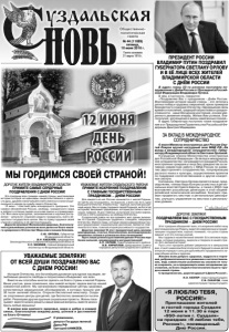 Газета основана 21 марта 1918 г. № 44 (11689) пятница, 10 июня 2016 г. Общественно политическая газета История Отечества, его богатейшее духовное культурное наследие, незыблемые ценности свободы и патриотизма объединяют нас всех. Вместе мы способны многое сделать на благо страны и малой Родины. Ваше участие, ваши пожелания, ваш живой интерес задали вектор нашей совместной работе. Мы организовали передвижные центры здоровья, качественные медицинские обследования, в которых прошли уже 30 тысяч жителей области. Открыли бесплатный кинотеатр. Создали спортивные центры для детей, где бесплатно занимаются тысячи ребят. Реализуем другие крупные социальные проекты. Жизнь показывает: вместе можно решать самые важные вопросы, вместе можно брать любые вершины! Я желаю вам крепкого здоровья, мира и добра в каждой семье, благополучия каждому дому, успехов и достижений на благо Отчизны! С уважением, депутат Государственной Думы РФ Григорий АНИКЕЕВ. УВАЖАЕМЫЕ ЗЕМЛЯКИ! ОТ ВСЕЙ ДУШИ ПОЗДРАВЛЯЮ ВАС С ДНЕМ РОССИИ! дие, неРодины. р нашей овья, уже дачи ао й й АС ДОРОГИЕ ЖИТЕЛИ ВЛАДИМИРСКОЙ ОБЛАСТИ! ПРИМИТЕ САМЫЕ СЕРДЕЧНЫЕ ПОЗДРАВЛЕНИЯ С ДНЕМ РОССИИ! Это праздник всех граждан нашей страны, многовековая история которой не единожды свидетельствовала о крепости духа, дружбе и величайшей ответственности многонационального народа за судьбу своего Отечества. 12 июня – поистине день всенародного праздника. Это символ обновлённой России, свободы, гражданского мира и доброго согласия людей на основе закона и справедливости. Все наши культурные, экономические и научные достижения – результат стараний каждого гражданина, всего общества и государства в целом. Мы по праву гордимся своей страной и уверены в её светлом будущем. Дорогие земляки! Желаем вам здоровья, благополучия и дальнейших успехов во всех делах на благо нашего суверенного Отечества! Мира вам и вашим близким. С.Ю. ОРЛОВА, Губернатор Владимирской области. В.Н. КИСЕЛЁВ, председатель Законодательного Собрания Владимирской области С.С. МАМЕЕВ, главный федеральный инспектор по Владимирской области. МЫ ГОРДИМСЯ СВОЕЙ СТРАНОЙ! ЗА ВКЛАД В МЕЖДУНАРОДНОЕ СОТРУДНИЧЕСТВО 6 июня Министр иностранных дел России Сергей Лавров вручил нагрудный знак МИД РФ «За вклад в международное сотрудничество» Губернатору Владимирской области Светлане Орловой. Нагрудным знаком Министерства иностранных дел Российской Федерации «За вклад в международное сотрудничество» награждаются граждане России, иностранные граждане и лица без гражданства за активную совместную работу с МИД России по развитию двустороннего сотрудничества, популяризацию русского языка и культуры, осуществление проектов по поддержке соотечественников и другие конкретные заслуги. Напомним, Светлана Орлова является вице-председателем, членом бюро Конгресса местных и региональных властей Совета Европы, а также с 2004 года возглавляет российскую делегацию в этой общеевропейской политической ассамблее. Конгресс призван продвигать местную и региональную демократию, улучшать управление на местном и региональном уровнях. УВАЖАЕМЫЕ ЖИТЕЛИ СУЗДАЛЬСКОГО РАЙОНА! ПРИМИТЕ ИСКРЕННИЕ ПОЗДРАВЛЕНИЯ С ГЛАВНЫМ ГОСУДАРСТВЕННЫМ ПРАЗДНИКОМ – ДНЕМ РОССИИ! Для каждого из нас Россия начинается с малой Родины, но где бы мы ни родились, ни выросли, у всех нас есть одно бол