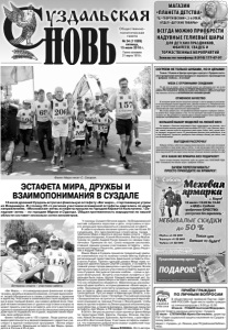 Газета основана 21 марта 1918 г. № 54 (11699) пятница, 15 июля 2016 г. Общественно политическая газета Заказы по телефону: 8 (910) 177-67-97 Реклама МАГАЗИН ПЛАНЕТА ДЕТСТВА ТЦ ГЕОРГИЕВСКИЙ, 2й ЭТАЖ, ОТДЕЛ ДЕТСКИЕ ТОВАРЫ Ж, ВСЕГДА МОЖНО ПРИОБРЕСТИ НАДУВНЫЕ ГЕЛИЕВЫЕ ШАРЫ ДЛЯ ДЕТСКИХ ПРАЗДНИКОВ, ЮБИЛЕЕВ, СВАДЕБ И ТОРЖЕСТВЕННЫХ МЕРОПРИЯТИЙ «Бег Мира» — это международная факельная эстафета мира, дружбы и взаимопонимания, которая вдохновляет людей объединиться в своем стремлении к гармонии и единству. Участники в олимпийском стиле передают из рук в руки горящий факел, как символ доброй воли. Каждый человек независимо от уровня подготовки и возраста может принять участие в эстафете, для этого достаточно пронести зажженный факел хотя бы несколько метров или даже просто подержать его в руках, выразив таким образом свою добрую волю. Факел побывал уже в 150 странах. Люди разных рас, видов деятельности и вероисповедания с радостью участвуют в единой глобальной программе. «Волна мира» идёт по планете. Факельная эстафета «Бег Мира» проводится в России в 25-й раз. 13 июля древний Суздаль встречал факельную эстафету «Бег мира», стартовавшую утром из Владимира. В столицу 33-го региона участники всемирной эстафеты двигались по двум направлениям. «Московская» ветвь эстафеты прошла по городам Киржач и Кольчугино. «Западная» ветвь – по городам Муром и Судогда. Общая протяженность маршрутов по нашей области составит несколько сотен километров. СОГРЕЕМ НЕ ТОЛЬКО ШУБАМИ, НО И ЦЕНАМИ! Только 18 июля в Центре культуры и досуга г.Суздаля состоится грандиозная меховая ярмарка от кировского производителя — фабрики «Соболь». А почему? МЕХА С ОГРОМНЫМИ СКИДКАМИ Ни для кого не секрет, что на текущий момент мы наблюдаем рост цен на все товары. МЫ СОХРАНИЛИ ЦЕНЫ НА УРОВНЕ ПРОШЛОГО ГОДА! Наша фабрика работает без посредников, поэтому мы можем себе позволить предлагать вам изделия отменного качества по АНТИКРИЗИСНО-НИЗКИМ ЦЕНАМ! ОТМЕННОЕ КАЧЕСТВО В последнее время многие покупатели приходят к нам на ярмарку и рассказывают об участившихся случаях подделок меха, ужасном пошиве и т.д. Неприятные ситуации, не так ли? Сложно не утратить доверие, когда продавцы обманывают и продают некачественный товар сомнительного происхождения. Мы готовы заверить вас, что приобретая меховое изделие от фабрики «Соболь», вы можете быть твердо уверены в том, что оно прослужит вам верой и правдой много-много лет. Мы ручаемся за качество меха и пошива каждого своего изделия! Вся продукция сертифицирована, с гарантией от производителя. БОЛЬШОЙ ВЫБОР МОДЕЛЕЙ НА ЛЮБОЙ ВКУС На ярмарке в большом ассортименте будут представлены как женские, так и мужские модели меховых изделий новой коллекции 2016-2017 года. Длинные, короткие, темные, светлые шубы из натурального меха норки, бобра, лисы, нутрии, мутона, каракуля, астрагана и енота. От разнообразия фасонов глаза разбегаются, и вы в этом убедитесь! Торопитесь приобрести свою меховую обновку уже сейчас, пока есть большой выбор! ВЫГОДНАЯ РАССРОЧКА* Фабрика «Соболь» заботится о каждом своем покупателе, и если у вас нет возможности приобрести товар прямо здесь и сейчас, то вам всегда рады пойти навстречу с предложением выгодной рассрочки без переплаты и даже без первого взноса, без справок и поручителей! От вас нужен только паспорт и большое желание приобрести шубу! Н