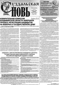 Газета основана 21 марта 1918 г. № 60 (11705) пятница, 5 августа 2016 г. Общественно политическая газета Заказы по телефону: 8 (910) 177-67-97 Реклама МАГАЗИН ПЛАНЕТА ДЕТСТВА ТЦ ГЕОРГИЕВСКИЙ, 2й ЭТАЖ, ОТДЕЛ ДЕТСКИЕ ТОВАРЫ Ж, ВСЕГДА МОЖНО ПРИОБРЕСТИ НАДУВНЫЕ ГЕЛИЕВЫЕ ШАРЫ ДЛЯ ДЕТСКИХ ПРАЗДНИКОВ, ЮБИЛЕЕВ, СВАДЕБ И ТОРЖЕСТВЕННЫХ МЕРОПРИЯТИЙ Он сообщил, что 3 августа Избирательная комиссия Владимирской области, на которую возложены полномочия окружных избирательных комиссий одномандатных избирательных округов № 79 и № 80 по выборам депутатов Государственной Думы Федерального Собрания Российской Федерации седьмого созыва, завершила процесс регистрации кандидатов, выдвинутых политическими партиями. Все 19 кандидатов, уведомивших комиссию о своем желании принять участие в выборах и представивших необходимые документы, были зарегистрированы. Один самовыдвиженец, который должен был не позднее 18.00 3 августа представить в областную Избирательную комиссию необходимые для регистрации документы, в том числе подписи избирателей, эти условия не выполнил, поэтому в ближайшее время комиссия рассмотрит вопрос об отказе в регистрации данного кандидата. «Я порядка 20 лет занимаюсь организацией выборного процесса, на моей памяти еще не было такого спокойного периода выдвижения и регистрации. Хотелось бы надеяться, что этот позитивный настрой сохранится и на оставшийся до дня голосования период», - добавил Вадим Минаев. Затем Председатель облизбиркома рассказал о процессе выдачи открепительных удостоверений, который начался по всей стране 3 августа. Во Владимирской области в этот день было выдано 4 удостоверения: три в одномандатном избирательном округе № 79 , одно в одномандатном избирательном округе № 80. Вадим Минаев напомнил, что граждане, которые по уважительным причинам не смогут проголосовать на своем избирательном участке, имеют право получить открепительное удостоверение. С ним можно отдать свой голос за кандидатов в Госдуму по единому избирательному округу по всей стране, а в случае перемещения в пределах одного избирательного округа – и за кандидата по одномандатному избирательному округу. С 3 августа по 6 сентября открепительные удостоверения можно получить в территориальной избирательной комиссии, а с 7 по 17 сентября – в участковой комиссии. При себе необходимо иметь паспорт гражданина РФ или документ, заменяющий паспорт. Кроме того, Председатель Избирательной комиссии Владимирской области проинформировал журналистов о выдвижении и регистрации кандидатов на выборах в органы местного самоуправления. Всего в единый день голосования в регионе пройдет 35 муниципальных избирательных кампаний, будет замещаться 171 мандат. По данным на 9.00 4 августа, во Владимирской области выдвинуто 582 кандидата. Из них 450 - от политических партий, 132 – в порядке самовыдвижения. 9 кандидатов указали сведения о когда-либо имеющейся судимости. Отменили выдвижение 37 кандидатов. Самое большое количество кандидатов выдвинуто на выборах депутатов Совета народных депутатов города Струнино четвертого созыва по одномандатному избирательному округу № 7 и на дополнительных выборах депутатов Совета народных депутатов Александровского района четвертого созыва по одномандатному избирательному округу № 12. В этих округах на депутатский мандат претендует по 7 кандидат