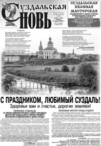 Газета основана 21 марта 1918 г. № 62 (11707) пятница, 12 августа 2016 г. Общественно политическая газета УВАЖАЕМЫЕ СУЗДАЛЬЦЫ! ОТ ИМЕНИ АДМИНИСТРАЦИИ И СОВЕТА НАРОДНЫХ ДЕПУТАТОВ СУЗДАЛЬСКОГО РАЙОНА ПРИМИТЕ ИСКРЕННИЕ ПОЗДРАВЛЕНИЯ С ДНЕМ ГОРОДА! Нам с вами повезло, мы живём в прекрасном городе, с живописной природой и уникальными памятниками архитектуры. Суздаль – это уникальный и единственный город- музей, город-сказка, жемчужина «Золотого кольца России». Посетив его однажды, многие снова и снова возвращаются, чтобы почувствовать дух русской провинции. Сегодня наша задача сохранить и приумножить имеющиеся достижения, сделать наш город поистине гостеприимным и комфортным для проживания. День города традиционно является одним из самых любимых горожанами и гостями города событий, которого ждут и к которому готовятся. Через восемь лет Суздаль отметит свой большой юбилей – 1000-летие. Работа по подготовке к этому масштабному событию уже начата, мы видим, как меняется и преображается наш город. Мы уверены, что к своему тысячелетнему юбилею Суздаль выйдет на новый уровень развития, станет уютным для гостей и комфортным для жителей. Хочется поблагодарить всех жителей за вклад в развитие города и искреннюю любовь к родному краю! Пусть праздничная атмосфера этих дней подарит всем отличное настроение и незабываемые впечатления. Искренне желаем нашему славному городу дальнейшего процветания, а его жителям - счастья, здоровья, мира, любви и благополучия! А.П. САРАЕВ, Глава Суздальского района. В.В. КИРИЛЛОВ, председатель Совета народных депутатов Суздальского района. УВАЖАЕМЫЕ ЖИТЕЛИ ГОРОДА СУЗДАЛЯ! 992-й год Суздаль украшает Землю русскую. Город создавался людьми работящими, совестливыми и верующими, поэтому так удивительна его история, прекрасна архитектура, неповторимы и крепки традиции. Суздаль – одно из самых удивительных и интересных мест в России. Суздальцы любят и берегут город, заботятся о том, каким его увидят внуки и правнуки. Всё больше туристов стремятся познакомиться с Суздалем, городом, открывающим дорогу к историческому прошлому и который уверенно смотрит в будущее. В этот замечательный праздник выражаем благодарность ветеранам, Почетным гражданам города Суздаля, чьими силами и напряженным трудом сохраняется наша малая Родина, благодарим тех горожан, которые неустанно трудятся, чтобы благоустраивался наш город. Поздравляем с Днём города замечательную суздальскую молодежь, связывающую надежды с древним Суздалем. Наш любимый город знаменит трудолюбием и гостеприимством своих жителей. Спасибо вам, уважаемые горожане, за искреннюю преданность и любовь к родному городу, за вашу неустанную заботу о его благополучии. Пусть праздник придёт в каждый дом! Пусть история древнего города полнится результатами труда жителей Суздаля и яркими, запоминающимися событиями. Успехов вам, дорогие земляки! И.Э.КЕХТЕР, глава города Суздаля. С.В. САХАРОВ, глава администрации города Суздаля. Майорова Л.В., Петрова А.М., Курашкина О.В., Журавлёв Э.Е., Белов А.Ю., Ландышева Л.Н., Кашенков С.В., Кузин А.Ю., Родионов С.Ю., Шалилов А.В., Пташук А.Ф., Большаков М.А., Горшкова Л.Я., Сидорова С.И. – депутаты Совета народных депутатов города Суздаля. СУЗДАЛЬ Вечерний Суздаль солнышком подсвечен. Малиновый берет всегда ему к лицу. Здесь храмы на века, как каменные свечи Ух