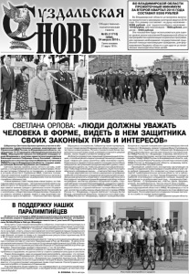 Газета основана 21 марта 1918 г. № 65 (11710) среда, 24 августа 2016 г. Общественно политическая газета 22 августа на площади у ЦКД Суздаля встречали участников велопробега. Состоялась акция в поддержку паралимпийской сборной России, отстраненной международным паралимпийским комитетом от участия в XV Паралимпийских Летних Играх в Рио-де-Жанейро. На встречу с участниками велопробега собрались спортсмены-велосипедисты и жители Суздаля. В поддержку российской паралимпийской сборной выступили Сергей Юдин (директор СОШ № 1 г.Суздаля) и Николай Курашкин (гл. специалист отдела по культуре, спорту, семье и молодежной политике администрации Суздальского района). Говорили о недопустимости неспортивных методов борьбы в отношении нашей сборной, которая по праву и по триумфальным результатам паралимпиад 2012 и 2014 годов является сильнейшей в мире. Международный паралимпийский комитет 7 августа отстранил российскую сборную в полном составе от участия в Паралимпиаде в Рио-де-Жанейро. 15 августа паралимпийский комитет России подал в Спортивный арбитражный суд (CAS) в Лозанне апелляцию на отстранение российской сборной от Паралимпийских игр в Рио-деЖанейро. Паралимпиада пройдет в Бразилии с 7 по 18 сентября. Данный шаг комитета является ударом по паралимпийцам, которые несмотря на проблемы со здоровьем, не сдались и могут служить примером силы духа и силы воли. Роман Александров, один из инициаторов велопробега, рассказал, что путешествие по городам Владимирской области организовано участниками молодёжных клубов, любителями велоспорта г. Владимира при поддержке единороссов. Жители Владимирской области охотно подписывают петицию в защиту паралимпийцев и надеются, что суд восстановит нарушенные права спортсменов. После Суздаля участники велопробега отправились в Камешково. Участвовавшие в акции надеются, что справедливость в отношении нашей паралимпийской сборной восторжествует, и мы будем вновь наблюдать за честной спортивной борьбой. Е. ФОКИНА. Фото автора. Губернатор Светлана Орлова приняла участие в объединенном торжественном разводе комплексных сил Управления МВД России по Владимирской области, посвященном 72-й годовщине образования регионального УМВД. Мероприятие прошло на Соборной площади города Владимира с участием заместителя председателя Законодательного Собрания Ольги Хохловой, главного федерального инспектора Сергея Мамеева и начальника УМВД России по Владимирской области, генерал-майора полиции Василия Кукушкина (на снимках). Светлана Орлова провела смотр личного состава, пообщалась с сотрудниками органов охраны правопорядка. В своём выступлении Губернатор остановилась на важных вехах в истории областного Управления МВД, отметила положительные изменения в работе правоохранительных органов и поблагодарила полицейских за добросовестное исполнение служебных обязанностей. «Новые времена ставят перед вами новые задачи, но главным все равно остается одно – честное выполнение своего служебного долга. От безупречной работы каждого из вас напрямую зависит мнение граждан о деятельности всего Управления внутренних дел. Поэтому необходима более тесная работа с населением, с общественными объединениями. Люди должны уважать человека в форме, видеть в нем защитника своих законных прав и интересов», - отметила Светлана Орлов