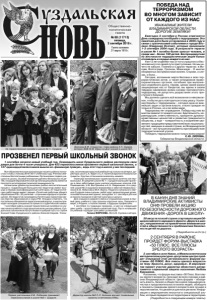 Газета основана 21 марта 1918 г. № 68 (11713) пятница, 2 сентября 2016 г. Общественно политическая газета В КАНУН ДНЯ ЗНАНИЙ ВЛАДИМИРСКИЕ АКТИВИСТЫ ОНФ ПРОВЕЛИ АКЦИЮ ПО БЕЗОПАСНОСТИ ДОРОЖНОГО ДВИЖЕНИЯ «ДОРОГА В ШКОЛУ» 30 августа по всей стране стартовала акция Общероссийского народного фронта «Дорога в школу», направленная на привлечение внимания властей и общественности к проблематике безопасности детей на дорогах. (Подробности на 3 стр.) ПОБЕДА НАД ТЕРРОРИЗМОМ ВО МНОГОМ ЗАВИСИТ ОТ КАЖДОГО ИЗ НАС УВАЖАЕМЫЕ ЖИТЕЛИ ВЛАДИМИРСКОЙ ОБЛАСТИ, ДОРОГИЕ ЗЕМЛЯКИ! Ежегодно 3 сентября в России отмечается День солидарности в борьбе с терроризмом. Эта памятная дата была установлена в 2005 году в связи с трагическими событиями в городе Беслане (Северная Осетия), которые произошли 1-3 сентября 2004 года. В результате теракта в школе № 1 погибло более трехсот человек, и среди них - более 150 детей. Беспрецедентная по жестокости террористическая акция болью отозвалась в сердце каждого из нас. Уже 12 лет отделяют нас от того страшного и бесчеловечного по своей сути преступления. Но мы ничего не забыли. Помним и о других терактах: в Москве, Волгограде, Грозном, Махачкале… О многих оборванных экстремистами жизнях. О крови, о слезах, о боли… Сегодня, вспоминая жертв Беслана и всех террористических актов, а также сотрудников правоохранительных органов, погибших при выполнении служебного долга, героев, ценою своей жизни защищающих нас от бандитов, мы едины в своем твердом намерении всеми силами противостоять терроризму, не допустить разрастания этого преступного безумия. Мы должны сделать всё возможное и невозможное, чтобы не дать повториться этому ужасу. Усиление борьбы с терроризмом – сегодня одна из важнейших задач и органов власти, и всех граждан не только в России, но и во всём мире. Терроризму нет оправдания. Победа над ним во многом зависит от каждого из нас. Бдительность, неравнодушие, ответственность, приоритет духовнонравственных ценностей и развитие гражданского общества, а еще – толерантность и искреннее уважение к традициям представителей всех национальностей, живущих в нашей стране, во Владимирской области – вот лучшие инструменты противодействия террористической угрозе. Победить терроризм можно только всем миром! С.Ю. ОРЛОВА, Губернатор Владимирской области. Все образовательные организации нашего района полностью готовы к новому 2016-2017 учебному году. Ученики обеспечены бесплатными учебниками. Организован подвоз учащихся в школы. Особое внимание уделено безопасности детей, в каждой образовательной организации района имеются паспорта антитеррористической защищенности. На высоком уровне организован учебно-воспитательный процесс: подавляющее большинство педагогов имеют высшую и первую квалификационные категории, 27 педагогических работников имеют звание «Почетный работник общего образования РФ», 20 учителей – отличники народного просвещения, 46 педагогов награждены Почетными грамотами министерства образования и науки РФ. Отрадно отметить, что постепенно обновляется педагогический корпус, в школы приходят молодые специалисты прямо со студенческой скамьи. 1 сентября в День знаний торжественные линейки по случаю начала учебного года прошли во всех школах района. Суздальских школьников напутствовал в добрый путь по стране Знаний Глава С