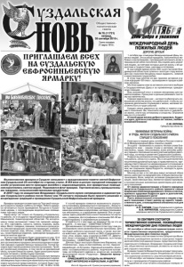 Газета основана 21 марта 1918 г. № 76 (11721) пятница, 30 сентября 2016 г. Общественнополитическая газета МЕЖДУНАРОДНЫЙ ДЕНЬ ПОЖИЛЫХ ЛЮДЕЙ ДОРОГИЕ ДРУЗЬЯ! 1 октября мы отмечаем Международный День пожилых людей. Это особый праздник, наполненный любовью и милосердием, призванный напомнить всем о неразрывной связи поколений. Мы отдаем дань уважения людям, за плечами которых долгая жизнь с её радостями и трудностями, удачами и потерями. В настоящее время около 400 тысяч жителей Владимирской области вступили в «золотую» пору жизни. Для нас поистине бесценны ваши мудрость, энергия и неиссякаемое трудолюбие. В этом году многие из вас приняли активное участие в форуме «50 плюс», прошедшем в городах и районах региона. Мы благодарны вам за активное участие в выборах в Государственную Думу и за проявленную гражданскую позицию. Ваш жизненный опыт и знания неоценимы для нашей молодёжи. Прошу вас и дальше развивать систему наставничества. Главная задача всех нас – не просто обеспечить повышение качества жизни, но сделать всё, чтобы вы сохранили деятельное отношение к жизни, желание постоянно быть в гуще событий. Каждая семья держится на любви и памяти старшего поколения. Вы помогаете нам жить и радоваться жизни, учите нас оптимизму и упорству. Огромное вам за это спасибо! От всей души желаю доброго здоровья, бодрости духа, долгих и счастливых лет жизни, любви и внимания близких! С.Ю.ОРЛОВА, Губернатор области. УВАЖАЕМЫЕ ВЕТЕРАНЫ ВОЙНЫ И ТРУДА, ЖИТЕЛИ СУЗДАЛЬСКОГО РАЙОНА СТАРШЕГО ПОКОЛЕНИЯ! Ежегодно в первый день октября в России отмечается Международный День пожилых людей. Эта дата – возможность сказать тёплые слова благодарности вам – нашим отцам и матерям, ветеранам войны, труда, пенсионерам, всем жителям района старшего поколения за многолетний добросовестный труд, за вклад в развитие Суздальского района. Именно вы заложили основу развития и благополучия района, области и страны. Вы и сегодня являетесь носителями духовной культуры и нравственности, примером ответственного и неравнодушного отношения к делу. Прожив тяжелую трудовую жизнь, испытав лишения, вы сохранили заряд бодрости, молодость души, веру в справедливость. Многие из вас и по сей день ведут активный образ жизни, работают на предприятиях, в общественных организациях. Воля, энергия, активная гражданская позиция, свойственные вам, являются ярким примером и положительным жизненным ориентиром для молодого поколения. От имени администрации и Совета народных депутатов Суздальского района примите самые искренние пожелания душевного тепла и счастья, крепкого здоровья бодрости духа и долголетия, радости и домашнего уюта! Пусть внимательное отношение к людям старшего поколения станет делом не одного торжественного дня, а повседневной обязанностью для каждого из нас. А.П. САРАЕВ, Глава Суздальского района. В.В. КИРИЛЛОВ, председатель Совета народных депутатов Суздальского района. Ярмарка проводится ежегодно на Торговой площади Суздаля в первую субботу октября. Работа ярмарки начинается после проведения Литургии в Казанской церкви, с последующим водосвятным освящением торговых рядов. Товар везут не только из Суздаля и Суздальского района, но и из других территорий Владимирской, Ивановской, Нижегородской областей. По ассортименту товар напоминает товар той, прежней, ярмарки. Это: кар
