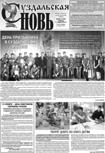 Газета основана 21 марта 1918 г. № 88 (11733) пятница, 11 ноября 2016 г. Общественнополитическая газета Есть такая профессия – Родину защищать – гласил плакат на сцене. Эта профессия не только важная и почетная, но и требует наличия определенных знаний, навыков, которые необходимы для службы в армии. Их надо приобретать и воспитывать с ранних лет, приобщать молодых к спорту. Наглядный пример этого – районный день призывника в Суздале. Он прошел в Центре культуры и досуга Суздаля (ЦКД). Пройдя процедуру жеребьевки, ребята активно демонстрировали свое мастерство строевого шага, с ловкостью собирали и разбирали автомат, надевали противогазы. С особым энтузиазмом молодые люди подошли к конкурсу «Поднятие гири», после напутственного слова и мастер-класса чемпиона мира по тяжелой атлетике, гиревому спорту среди ветеранов, В.В. Якубова. Не только свою хорошую физическую подготовку, но и слаженную командную работу молодые люди показали в конкурсе «Перетягивание каната», который проходил в несколько этапов. Поддержать свои учебные заведения и команды участников пришли одноклассники и одногруппники молодых людей. Аплодисменты и «кричалки» не затихали в зале. В перерывах между конкурсами с концертными номерами выступали артисты ЦКД. По окончании конкурсной программы начальником отдела военного комиссариата Владимирской области по городу Суздаль и Суздальскому району В.Ф. Старостиным были торжественно вручены повестки призывникам осеннего призыва, сказаны напутственные слова, а также вручены подарки от администрации Суздальского района. Были также отмечены грамотами двое молодых людей за активное участие в празднике «День призывника-2016». По итогам конкурсной программы единогласным решением членов жюри первое место заняла команда Суздальского индустриально-гуманитарного колледжа. Она была награждена кубком победителя, дипломом и сладким призом. Второе место заняла команда средней общеобразовательной школы №1, третье место – команда средней общеобразовательной школы №2. Эти команды были награждены дипломами второй и третьей степени соответственно. Почетное четвертое место заняли ребята из Суздальского филиала «СПбГИК», они были награждены утешительным сладким призом. После конкурсов, которые прошли живо и интересно, ребята сфотографировались на память. Алена САКАРА. ДЕНЬ ПРИЗЫВНИКА В СУЗДАЛЬСКОМ РАЙОНЕ В районном Дне призывника приняли участие юноши призывного и допризывного возраста из учебных заведений города Суздаля. В конкурсной программе принимали участие четыре команды: МБОУ «СОШ №1» г. Суздаля, МБОУ «СОШ №2» г. Суздаля, ГБПОУ ВО «СИГК» и команда Суздальского филиала «СПбГИК». 12 НОЯБРЯ – ДЕНЬ РАБОТНИКОВ СБЕРБАНКА РОССИИ УВАЖАЕМЫЕ ВЕТЕРАНЫ И СОТРУДНИКИ СУЗДАЛЬСКОГО ФИЛИАЛА ОТДЕЛЕНИЯ СБЕРБАНКА РОССИИ! От имени администрации и депутатов Суздальского района примите искренние поздравления с профессиональным праздником-Днем работника Сбербанка России! За свою богатую яркими событиями историю Сбербанк был и остается одним из важнейших финансовых институтов страны, внося весомый вклад в укрепление отечественной экономики. Постоянно расширяя спектр предоставляемых услуг, и используя в работе новейшие технологии, филиалы Сбербанка с каждым годом набирают темпы развития и пользуются заслуженным авторитетом на фин