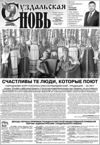 Газета основана 21 марта 1918 г. № 90 (11735) пятница, 18 ноября 2016 г. Общественнополитическая газета СЧАСТЛИВЫ ТЕ ЛЮДИ, КОТОРЫЕ ПОЮТ НАРОДНОМУ ХОРУ ПОСЕЛКА КРАСНОГВАРДЕЙСКИЙ «ТРАДИЦИЯ» - 30 ЛЕТ! Сегодня, 18 ноября, в ЦКД города Суздаля в 17.00 состоится юбилейный концерт хора «Традиция». На него соберутся настоящие друзья и поклонники творчества этого коллектива. Сейчас это титулованный и хорошо известный не только в нашем районе, но и за его пределами коллектив. Прошло 30 лет, и уже мало кто помнит, как все не просто начиналось... Депутат Государственной Думы Григорий АНИКЕЕВ: «Наш проект доказал свою востребованность, поэтому эту работу мы будем продолжать и развивать». Подробности на 2 стр. Любое искусство живет энтузиастами, людьми, во многом готовыми принести себя в жертву во имя идеи, искусства. Для красногвардейского хора «отцом» и творческим вдохновителем стал Александр Емелин. Сегодня он - заслуженный работник культуры РФ, а тогда, в 1986 году, у него не было званий и регалий, у хора - дипломов и наград, даже костюмов для выступлений. Но было ощущение, что песня нужна людям, что она помогает не только преодолевать трудности, но и просто жить. С 1992 года руководить коллективом стали Людмила Боброва и Борис Мурашко. И в этом же году Постановлением Администрации Владимирской области хору присваивается звание «Народный коллектив». Свою лепту в становление коллектива внесли Мария Соловьева и Виктор Харахнин. Последние 15 лет хором руководят Татьяна и Сергей Шепелевы. Надо отметить, что все руководители оставили свой особый след в истории хора, вложили свою душу и сердце. За время существования хора изменилось многое - и репертуар, и костюмы, но неизменными остались характер выступлений, задор исполнителей, их мастерство. Особо хочется отметить, что большинство участниц хора поют в нем все 30 лет! С первого дня поют в хоре Екатерина Топчий, Мария Полторыгина, Татьяна Дерябина, Любовь Соловьева. Всегда тепло встречают зрители выступление солистки хора Надежды Дудуновой. Фотолетопись хора на протяжении многих лет ведет одна из его участниц Елена Фокина. Своим творчеством они щедро делятся со зрителями. Выступления хора всегда оставляют неизгладимые впечатления. Красота русских мелодий, удаль и широта русской натуры, нарядные костюмы- покоряют слушателей. Хор поет и частушки, и русские народные песни, произведения современных авторов. Особое место в репертуаре занимают песни патриотического содержания - о войне, о России. Главное направление в работе хора - возрождение народных песенных традиций, их сохранение. И ему следуют уже много лет. На счету коллектива много грамот, дипломов. Он победитель многочисленных престижных конкурсов и фестивалей. Без него не обходится практически ни одно мероприятие ни в Селецком сельском поселении, ни в Суздальском районе. Его выступления любят и ждут. Народный хор поселка Красногвардейский - это яркий коллектив, каждый участник которого испытывает радость не только от пения, но и от общения друг с другом. На протяжении всех этих 30 лет коллектив живет одной семьей. Как говорят его руководители супруги Шепелевы, «...в коллективе существует духовное единение, атмосфера взаимовыручки, надежного плеча, любовь к песне, которые ведут хор к новым свершениям, творческим победам. За все это хочется сказать его участница