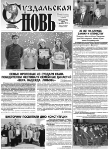 ДЕЛА. СОБЫТИЯ. ЛЮДИ общественнополитическая газета УЗДАЛЬСКАЯ № 97 (11742) среда, 14 декабря 2016 г. 3 Свой 15-й день рождения Партия «ЕДИНАЯ РОССИЯ» отметила декадой личных приемов граждан в местной общественной приемной Партии «ЕДИНАЯ РОССИЯ» Суздальского района. В нашем районе открыли свои двери 6 площадок, где единороссы встречались с населением. По итогам декады 24 человека обратились в приемные со своими наболевшими вопросами. 15 лет назад «ЕДИНАЯ РОССИЯ» объединила вокруг национального лидера Владимира Путина всех, кто стремился сохранить единство страны, сделать ее по-настоящему сильной и независимой. У Партии «ЕДИНАЯ РОССИЯ» самая мощная сеть общественных приемных. Ни одно из обращений не остается без внимания. Даже когда обращение не может быть решено положительно, гражданину дается исчерпывающая консультация – правовая, юридическая. В этот раз для удобства жителей к работе местной общественной приемной в Суздале подключились дополнительные приемные во всех поселениях района. Прием вели Глава Суздальского района А. Сараев, секретарь местного отделения Партии Т. Срибная, главы городского и сельских поселений, главы администраций города Суздаля и Новоалександровского сельского поселения, депутаты районного Совета народных депутатов. Депутаты Законодательного Собрания Владимирской области В. Картухин и Ю. Федоров также встретились с жителями района в общественной приемной, причем заместитель председателя Заксобрания В. Картухин прием вел в селе Торчино. Вопросы, с которыми обращались посетители, касались в основном системы жилищно-коммунального хозяйства, социального обеспечения, качества медицинского обслуживания, лекарственного обеспечения. Как всегда, люди приходили, чтобы решить личные вопросы и проблемы, касающиеся целых сел и деревень. - Для нас особенно важно, что люди видят в Партии помощника в решении проблем, доверяют «ЕДИНОЙ РОССИИ». Среди обратившихся в общественную приемную немало тех, кто уже здесь бывал. Мы дорожим таким доверием. Оправдать его и максимально помочь человеку – главная наша задача. Все обращения будут тщательно изучены, по возможности заявителям будет ПРИЕМОМ ГРАЖДАН ОТМЕТИЛИ ДЕНЬ РОЖДЕНИЯ ПАРТИИ МЕСТНЫЕ ЕДИНОРОССЫ оказана помощь, - подвела итог декады личных приемов граждан в общественной приемной лидер местных единороссов Т. Срибная. Галина ФИРСОВА. Фото автора. С 7 ноября 2016 года по 7 января 2017 года на территории Владимирской области проводится комплексная межведомственная профилактическая операция «Семья». Мероприятия, проводимые в рамках операции, направлены на оказание комплексной помощи семьям «группы риска», подросткам, оставшимся без попечения родителей и нуждающимся в защите со стороны государственных и муниципальных органов, а также на выявление случаев жестокого обращения с детьми. Приказом начальника ОМВД России по Суздальскому району подполковника полиции Д.А. Ильина для непосредственного управления подразделениями и нарядами в период операции, координации их действий, слежением за оперативной обстановкой была создана рабочая группа, в которую вошли офицеры-руководители различных подразделений ОМВД. В рамках операции «Семья» суздальские стражи порядка действуют как самостоятельно, так и совместно с сотрудниками управления образования администрации С