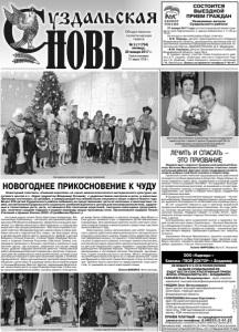 Газета основана 21 марта 1918 г. № 5 (11754) пятница, 20 января 2017 г. Общественнополитическая газета ООО «Надежда+» Клиника «ТВОЙ ДОКТОР» г.Владимир 28 ЯНВАРЯ С 9.00 В ПОЛИКЛИНИКЕ НА БАЗЕ СУЗДАЛЬСКОЙ РБ БУДУТ ВЕСТИ КОНСУЛЬТАТИВНЫЙ ПРИЕМ ВРАЧИ-СПЕЦИАЛИСТЫ ИЗ г. ВЛАДИМИРА: •КАНАЕВ Олег Владимирович - врач-онкологмаммолог высшей квалификационной категории •ФЕДИН Олег Вячеславович - врач-уролог высшей квалификационной категории, главный уролог Владимирской области •ПЛАТОНОВА Наталья Сергеевна - врач УЗ-диагностики высшей квалификационной категории (УЗИ органов брюшной полости, простаты, УЗИ щитовидной и молочных желез, УЗИ гинекологическое) ПРИЁМ ПЛАТНЫЙ - по предварительной записи по телефону: 8 (49231) 2-01-22 Информация о клинике на сайте: www.tvoi_doctor33.ru ВНИМАНИЕ! ИМЕЮТСЯ ПРОТИВОПОКАЗАНИЯ, ПРОКОНСУЛЬТИРУЙТЕСЬ СО СПЕЦИАЛИСТОМ Лиц. №ЛО-33-01-001691 от 17.10.2014 выд. деп. здравоохр. адм. Влад. обл. Реклама На сцене ожила сказка Ганса Христиана Андерсена. Великолепная Разбойница – её играла заслуженный работник культуры РФ Валентина Варакина, убедительно внушала зрителям, что «Детям нельзя ни в чём отказывать, и тогда из них вырастают настоящие разбойники!». Жёсткий и прямой Статский советник (Владимир Едунов) одним своим словом разбивал мягкий и лирический быт семьи, где благодаря теплу и непрестанной заботе цветут зимой розы. Добрая и уютная Бабушка (Татьяна Кожина), стойкая Герда (Надежда Житникова) и ледяная Снежная Королева (Светлана Гусева) очаровывали маленьких и больших зрителей и увлекали в мир светлой сказки, где холодное, уверенное зло пасует перед тихим, добрым сердцем маленькой девочки. Режиссёрская работа Владимира Карпова понравилась зрителям. Сценическое действо завершилось новогодней песней, которая стала для присутствующих в зале приглашением в фойе, к зелёной, нарядной ёлке. Здесь для маленьких зрителей продолжалось общение с артистами. В хороводе можно было пройти рядом с грозным Вороном (Виктор Чаусов), маленькими Воронятами, можно было взять за руку Снежную Королеву. У ёлки снова шалила разбойничья шайка, пытаясь украсть Снегурочку, но вновь была побеждена и просила пощады. Дед Мороз и Снегурочка затевали игры и одаривали детей маленькими сюрпризами. Все маленькие зрители после спектакля получили сладкие подарки и уехали домой с радостным чувством прикосновения к чуду. Новогоднюю сказку организовали для ребят Суздальского района работники межпоселенческого методического культурно-досугового центра. Заместитель директора Наталья Гуреева рассказала, что прошло 7 спектаклей для учащихся школ Суздальского района, в которых принял участие весь коллектив культурно-досугового центра и маленькие артисты из детской театральной студии «Алфавит» (художественный руководитель Владимир Карпов). Творчески поработала над декорациями и костюмами Наталья Неклюдова, руководитель студии пошива русского костюма. Много потрудились на репетициях взрослые артисты и совсем маленькие, такие как Ведущий в спектакле Гриша Житников. И все это было не зря. Зрители были в восторге от представлений, игры артистов, от ожившей на сцене новогодней сказки. Елена ФОКИНА. Фото автора. НОВОГОДНЕЕ ПРИКОСНОВЕНИЕ К ЧУДУ Новогодний спектакль «Снежная королева» на сцене межпоселенческого методического культурно-досугового центра в с. Новое (директор Влади