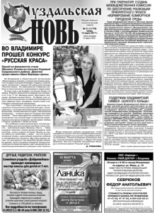 Газета основана 21 марта 1918 г. № 21 (11770) среда, 15 марта 2017 г. Общественнополитическая газета Мы вместе готовим печенье, пиццу, пончики и другие очень вкусные угощения. Кулинарное творчество и чаепитие - отличное окончание самой длинной четверти! Стоимость от 200 рублей за человека. ДРУЗЬЯ, РОДИТЕЛИ, УЧИТЕЛЯ! Семейная усадьба «Добролюбово» проводит кулинарные мастер-классы для детей от 5 лет. Все подробности по телефонам: 8 (49231) 2-08-44 или 8 800 200 52 92 Реклама ООО «Надежда+» Клиника «ТВОЙ ДОКТОР» г.Владимир 18 марта с 9.00 в городе Владимире по адресу: ул. Мира, д. 15 БУДЕТ ВЕСТИ ПРИЁМ ЗАВЕДУЮЩИЙ УРОЛОГИЧЕСКИМ ЦЕНТРОМ, ОДИН ИЗ ВЕДУЩИХ УРОЛОГОВ РОССИИ, ПРОФЕССОР, ДОКТОР МЕДИЦИНСКИХ НАУК СЕВРЮКОВ ФЕДОР АНАТОЛЬЕВИЧ (Все виды урологических заболеваний, в том числе онкологических) СТОИМОСТЬ ПРИЕМА 2000 РУБЛЕЙ. СПРАВКИ И ЗАПИСЬ ПО ТЕЛЕФОНАМ: 47-47-08, 47-47-09, 8-904-259-59-31 Дополнительная информация на сайте: www.tvoi-doctor33.ru ВНИМАНИЕ! ИМЕЮТСЯ ПРОТИВОПОКАЗАНИЯ, ПРОКОНСУЛЬТИРУЙТЕСЬ СО СПЕЦИАЛИСТОМ Лиц. №ЛО-33-01-001691 от 17.10.2014 выд. деп. здравоохр. адм. Влад. обл. Реклама Во Владимире в общественной организации «Милосердие и порядок» в рамках программы депутата Госдумы Григория Аникеева «Гордись страной, расти патриотом!» прошел VIII областной конкурс «Русская краса». На мероприятие собрались ребята со всего региона с родителями и педагогами. В этом году в оргкомитет поступило более ста заявок. В финал прошли 20 конкурсанток в возрасте от 4 до 17 лет. Варвара-краса, Ярославна, Аленушка, великая княгиня Ольга… В образе этих героинь участницы вышли на сцену киноконцертного зала. Девочки пели, танцевали, читали стихи и показывали театральные миниатюры. - При подготовке к конкурсу все участницы погрузились в мир исконно русской культуры, познакомились с лучшими женскими образами русского фольклора, отечественной истории, классической литературы, - отметил депутат Госдумы Григорий Аникеев. - Такие мероприятия направлены на развитие детей, они способствуют сохранению национальных культурных традиций, воспитывают любовь к Родине, уважение к своим истокам. - Это любимая сказка моей дочери, поэтому выбрать образ для выступления нам было очень просто, - рассказала мама Эвелины Ольга. – Такие конкурсы помогают нашим детям расширить свой кругозор, узнать родную историю. Выход на сцену, работа со зрителями, с жюри – все это вносит огромный вклад в дальнейшее развитие ребенка и становление его личности. Мы очень высоко ценим, что наш депутат Григорий Викторович Аникеев уделяет такое огромное внимание патриотическому воспитанию молодежи, дает нашим детям замечательную возможность раскрыть свои таланты. ВО ВЛАДИМИРЕ ПРОШЕЛ КОНКУРС «РУССКАЯ КРАСА» Одной из финалисток стала Эвелина Усоева из поселка Садовый Суздальского района. Девочка представила образ Варвары-красы. Жюри пришлось немало потрудиться, чтобы определить лучших. В итоге победителями конкурса в разных возрастных группах стали Мария Липина (Собинка), Полина Коллерова (Собинский район), Ксения Княжева (Киржач) и Мария Петухова (Вязники). Все они получили заслуженные награды и почетное звание «Русская краса». Д. РОМАНОВА. Эвелина Усоева с мамой. Организатор: ИП Шульпина А.В., ИНН 371800538755, ОГРНИП 312370204100013. Реклама ПОДДЕРЖИМ ВЛАДИМИРСКИЙ СИМВОЛ «ЗОЛОТОГО КОЛЬЦА»! Администрация Владимирской области призывает жителей региона проголо