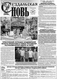 Газета основана 21 марта 1918 г. № 93 (11842) среда, 22 ноября 2017 г. Общественнополитическая газета ДЕКАДА ЛИЧНЫХ ПРИЕМОВ ГРАЖДАН В МЕСТНОЙ ОБЩЕСТВЕННОЙ ПРИЕМНОЙ ПАРТИИ «ЕДИНАЯ РОССИЯ» СУЗДАЛЬСКОГО РАЙОНА 27 ноября с 9 до 10 часов - Г.А. Фирсова, депутат районного Совета народных депутатов, общественная приемная, г. Суздаль, ул.Ленина, д. 78. 28 ноября с 9 до 11 часов – О.К.Гусева, заместитель секретаря местного отделения Партии, здание администрации, с. Павловское, ул. Школьная, д. 17-а. 29 ноября с 9 до 10 часов – И.Е. Степанова, начальник отдела социальной защиты населения, общественная приемная, г. Суздаль, ул. Ленина, д. 78. 29 ноября с 9 до 11 часов – А.Н. Торопов, глава МО Селецкое, Н.И. Курашкин, глава администрации МО Селецкое, здание администрации, с. Сельцо, ул. Центральная, д. 94. 30 ноября с 9 до 11 часов – Е.Е. Кашина, глава администрации МО Новоалександровское, здание администрации, с. Новоалександрово, ул. Владимирская, д. 1. 1 декабря с 10 до 12 часов – В.М. Русаков, депутат районного Совета народных депутатов, Дом культуры, с. Новое, ул. Молодежная, д. 2-б. 1 декабря с 10 до 12 часов – Т.А.Срибная, секретарь местного отделения Партии, Л.В.Майорова, глава МО г. Суздаль, общественная приемная, г. Суздаль, ул. Ленина, д. 78. 1 декабря с 15 до 16 часов – Ю.М.Федоров, депутат Законодательного Собрания Владимирской области, общественная приемная, г. Суздаль, ул. Ленина, д. 78. 1 декабря с 16 до 17 часов – С.В.Сахаров, член регионального политического совета, глава администрации г. Суздаля, общественная приемная, г. Суздаль, ул. Ленина, д. 78. УВАЖАЕМЫЕ ЖИТЕЛИ ГОРОДА СУЗДАЛЯ! Администрация города Суздаля напоминает, что 1 декабря текущего года истекает срок уплаты по налогам (земельный, транспортный и налог на имущество физических лиц), начисленным за 2016 год. Всем, кто не получил квитанции на налоги, необходимо обратиться в почтовое отделение связи или Межрайонную ИФНС России № 10 по Владимирской области по адресу: г. Суздаль, Красная площадь, д.1, 3-й этаж, контактный телефон 2-12-61. После 1 декабря 2016 года за неуплаченные налоги будут начисляться пени. 21 ноября – День работника налоговых органов УВАЖАЕМЫЕ СОТРУДНИКИ И ВЕТЕРАНЫ НАЛОГОВЫХ ОРГАНОВ! От души поздравляю вас с профессиональным праздником! Налоговая служба играет значимую роль в формировании благоприятной экономической ситуации в регионе. Это динамично развивающаяся структура, применяющая самые современные технологии, формы и методы работы. Обеспечивая налоговые поступления в бюджеты всех уровней, вы стремитесь всемерно улучшать качество обслуживания. Это очень важно, ведь от внимательного отношения сотрудников налоговой службы к налогоплательщикам зависит предпринимательская активность и инвестиционный климат в целом нашего региона. Жители области уже оценили эти преимущества. Благодаря вашим профессиональным и слаженным действиям во многом обеспечивается устойчивое пополнение бюджетов, что позволяет успешно решать насущные социальные проблемы, эффективно реализовать приоритетные национальные проекты, обеспечивать поступательное развитие Владимирской области. Уверена, накопленный опыт, знания и желание приносить пользу Отечеству позволит и в дальнейшем добиваться весомых результатов в вашей профессиональной деятельности. Желаю вам успехов в труде, требующем высочайшего профессионализма, чувства долга и высокой отв