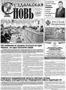 Газета основана 21 марта 1918 г. № 100 (11849) пятница, 15 декабря 2017 г. Общественнополитическая газета Бронирование по тел. 8-920-922-40-69 или на сайте www.svbani.ru ДОРОГИЕ ЖИТЕЛИ г.СУЗДАЛЯ! ПРИГЛАШАЕМ ВАС В СВЕТЛУЮ БАНЮ ПО СПЕЦИАЛЬНОЙ ЦЕНЕ С ВОСКРЕСЕНЬЯ ПО ЧЕТВЕРГ Для вас индивидуальные залы, дровяные печи, контрастные купели, комната отдыха, ароматный чай. Принимаются группы от 4 до 8 человек. СТОИМОСТЬ ПОСЕЩЕНИЯ: 400 рублей с человека за 3 часа, ДЕТИ до 7 лет – БЕСПЛАТНО Во время визита предлагаем пройти медово-соляной пилинг всего тела - 500 рублей с человека. Реклама г. Суздаль, ул. Пушкарская, д. 27-а. Тел.: 8(49231) 206-26, 8 (905) 142-43-93 suzdal@russkoepodvorie.com • www.rp-suzdal.ru Приглашаем вас на новогодние корпоративы в ресторан «Русское подворье» Приходите к нам в гости! Будем рады вас видеть! Банкет от 1250 руб./чел. Пробковый сбор отсутствует Шикарное меню, уютные залы! Б П Ш Реклама По инициативе депутата Госдумы Григория АНИКЕЕВА в регионе проходят новогодние елки для детей. ы Подробности на 3 стр. Светлана Орлова поделилась с участниками встречи опытом Владимирской области в части реализации Национальной стратегии, которая получила мощное дополнительное развитие за счёт демографических инициатив Президента России Владимира Путина. «Ключевые направления этих инициатив – семейная политика и сбережение детства – находят отражение в «детском бюджете» Владимирской области, который составляет более 16 миллиардов рублей в год. Без внимания не останется ни один ребенок, ни одна категория семей», – заверила Светлана Орлова. Глава 33-го региона сообщила, что на меры социальной поддержки и выплаты в связи с рождением и воспитанием детей во Владимирской области каждый год направляется более 2 млрд. рублей с ежегодной индексацией на 5 процентов. В нашем регионе выплачивается единовременное пособие в размере 100 тысяч рублей при рождении одновременно трёх и более детей, областной материнский капитал на третьего ребенка (52,5 тыс. рублей), выплаты многодетным семьям на приобретение и строительство собственного жилья. Только за 2017 год сертификаты получили почти 1700 семей на сумму 94 млн. рублей. Кроме того, многодетным семьям Владимирской области бесплатно предоставляются в собственность земельные участки для жилищного строительства. Уже почти 2,5 тысячи семей воспользовались этим правом. «Особое внимание – устройству детей, оставшихся без попечения родителей, в семьи, – подчеркнула Светлана Орлова. – Немаловажно, что 93 процента детей, потерявших родителей, воспитывается в семьях жителей нашей области. Сейчас в 10 детских домах региона находятся 250 детишек. Каждый ребёнок – наша общая забота. Мы закрепили за детскими домами шефов из числа моих заместителей. Не жалеем средств на приближение условий их пребывания к семейным». «Детский бюджет» Владимирской области включает и расходы на развитие дошкольного образования. Благодаря поддержке федерального центра в 33-м регионе построено и реконструировано 28 учреждений, введено более 9 с половиной тысяч мест в детских садах. Все малыши от двух до семи лет приняты в дошкольные учреждения. В 2016 году во Владимирской области фактически заново построены 3 школы. К началу этого учебного года открыта ещё одна новая современная школа на 300 мест в посёлке Великодворский Гусь-Хрустального района, капитально отремонтировали школы в Муроме и Коврове. З