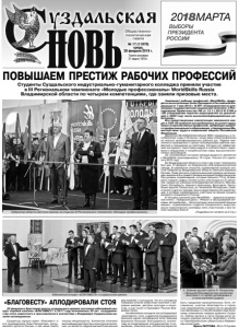 Газета основана 21 марта 1918 г. № 17 (11870) среда, 28 февраля 2018 г. Общественнополитическая газета Чемпионат рабочих профессий «WorldSkills» проводится во исполнение Указа Президента Российской Федерации от 7 мая 2012 г. N 597 «О мероприятиях по реализации государственной социальной политики» и Распоряжения Правительства РФ от 13.11.2013 N 2108-р «Об утверждении перечня мероприятий по увеличению к 2020 году числа высококвалифицированных работников». Все представленные компетенции чемпионата входят в ТОП-50 наиболее востребованных на рынке труда, новых и перспективных профессий, требующих среднего профессионального образования, утвержденных Министерством труда и социальной защиты Российской Федерации. Движение WorldSkillsInternational (WSI) зародилось в послевоенные годы в Испании, когда миру катастрофически не хватало квалифицированных рабочих рук. Первые чемпионаты проводились с целью популяризации рабочих профессий и повышения их престижа. Сегодня это эффективный инструмент подготовки кадров в соответствии с мировыми стандартами и потребностями новых высокотехнологичных производств. За полувековую историю международного движения к WorldSkills присоединились 79 стран. Россия это сделала в 2012 году. Во Владимирской области в этом году старт чемпионату был дан 12 февраля на Ковровском электромеханическом заводе. В церемонии открытия соревнований приняла участие Губернатор Владимирской области Светлана Юрьевна Орлова. Глава региона отметила высокий уровень организации чемпионата и приветствовала молодых профессионалов. Про уровень соревнований, которые прошли с 12 по 16 февраля, говорят цифры: более тысячи участников из 27 регионов. Среди них команды из Владимирской области, Москвы, Санкт-Петербурга, Нижнего Новгорода, Ярославля, Республики Адыгея, Казахстана, из Чеченской Республики, Севастополя и других городов. Были представлены 25 компетенций, в которых соревновались участники за звание лучшего молодого специалиста России. В четырёх компетенциях WorldSkills - «Администрирование отеля», «Поварское дело», «Ремонт и обслуживание легковых автомобилей», «Эксплуатация сельскохозяйственных машин»- соревновались студенты Суздальского индустриально-гуманитарного колледжа (пять участников) и все заняли призовые места! (Подробности читайте на 2 стр.) ПОВЫШАЕМ ПРЕСТИЖ РАБОЧИХ ПРОФЕССИЙ Студенты Суздальского индустриально-гуманитарного колледжа приняли участие в III Региональном чемпионате «Молодые профессионалы» WorldSkills Russia Владимирской области по четырем компетенциям, где заняли призовые места. Губернатор области Светлана Орлова на открытии III Регионального чемпионата «Молодые профессионалы». «БЛАГОВЕСТУ» АПЛОДИРОВАЛИ СТОЯ Суздальцы хорошо знают «Благовест» и его руководителя Льва Панкратова, заслуженного артиста России, о них наша газета писала неоднократно. Коллектив отличают высочайшие мастерство и культура исполнения, он является лауреатом многочисленных 23 февраля в Крестовой палате суздальского кремля состоялся юбилейный концерт хоровой капеллы «БЛАГОВЕСТ»: в 2017 году исполнилось 25 лет сотрудничеству этого известного и прославленного коллектива с Владимиро-Суздальским музеем-заповедником. быть городским муниципальным. Хотя, несомненно, участие «Благовеста» в городских мероприятиях усилило бы их духовную составляющую и способствовало ещ