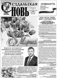 Газета основана 21 марта 1918 г. № 19-20 (11872-11873) среда, 7 марта 2018 г. Общественнополитическая газета Дорогие женщины! ПРИМИТЕ ИСКРЕННИЕ ПОЗДРАВЛЕНИЯ С МЕЖДУНАРОДНЫМ ЖЕНСКИМ ДНЕМ! Дорогие женщины! Спасибо вам за трудолюбие, жизненную стойкость и душевную чуткость. В этот весенний праздничный день искренне желаю вам семейного благополучия, крепкого здоровья, счастья и добра! С уважением, депутат Государственной Думы РФ Григорий АНИКЕЕВ. Женщина - это олицетворение нежности и красоты, источник вдохновения. Ее высокое предназначение - дарить новую жизнь, бережно хранить тепло домашнего очага. Испокон веков женщина прививает детям такие важные качества, как любовь, отзывчивость, милосердие. От семейного воспитания зависит, какой путь выберет ребенок во взрослой жизни, кем станет и какой вклад внесет в развитие своей малой Родины и страны в целом. ДОРОГИЕ ЖЕНЩИНЫ! ПРИМИТЕ НАШИ СЕРДЕЧНЫЕ ПОЗДРАВЛЕНИЯ С МЕЖДУНАРОДНЫМ ЖЕНСКИМ ДНЁМ 8 МАРТА! Первый весенний праздник в нашей стране давно стал днём поклонения Женщине, которая несёт в мир любовь и красоту, растит детей и созидает, делает окружающий мир добрее и совершеннее. Сегодня решение многих сложных государственных задач лежит на ваших хрупких плечах. При необходимости вы проявляете твёрдость и решительность, но всегда сохраняете женственность и обаяние. Благодаря вашей самоотверженности, преданности и терпению в нашем обществе сохраняются незыблемыми такие жизненные ценности, как семья, дети, забота о старшем поколении. От всей души желаем вам удачи во всех начинаниях и устремлениях, благополучия, ярких впечатлений и счастливых моментов каждый день в году! С.Ю. ОРЛОВА, Губернатор Владимирской области. В.Н. КИСЕЛЕВ, председатель Законодательного Собрания Владимирской области. С.С. МАМЕЕВ, главный федеральный инспектор по Владимирской области. ДОРОГИЕ ЖЕНЩИНЫ! От имени администрации и Совета народных депутатов Суздальского района примите искренние и сердечные поздравления в Международный женский день! Этот светлый весенний праздник является символом любви, вдохновения и созидания. Он наполнен цветами, улыбками, теплом, искренними признаниями в любви к нашим женам, дорогим мамам, дочерям, сестрам. В этот день мы говорим самые красивые слова, делаем самые нежные признания, дарим всё своё внимание и букеты цветов нашим дорогим женщинам! Тем самым выражая признание великой роли женщины в жизни, её заслуг перед обществом, перед каждым из нас. Вы вдохновляете нас, мужчин, на мужественные поступки и плодотворную работу. Наши успехи невозможны без вашей поддержки, любви и терпения, огромной внутренней силы. Любые трудности становятся легко преодолимыми, если рядом с нами вы, наши дорогие женщины. Благодаря вам остаются незыблемыми наши вечные ценности – любовь, семья, верность. Вы храните семейный очаг, воспитываете детей, добиваетесь успехов в профессиональной и общественной деятельности. И, несмотря на огромную занятость, неизменно остаетесь прекрасными, обаятельными и женственными. Мы бесконечно благодарны вам, дорогие женщины, за доброту и терпение, за мудрость и великодушие, за домашний уют, за умение выслушать и поддержать! Желаем любви, счастья, гармонии и семейного благополучия, пусть в вашей жизни будет как можно больше ярких и радостных дней! В.В. КИРИЛЛОВ, Глава Суздальского ра