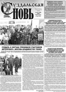 Газета основана 21 марта 1918 г. № 45 (11898) среда, 6 июня 2018 г. Общественнополитическая газета Экспедиция посвящена 150-летию со дня рождения Государя Николая II, а также 100-летию убийства царской семьи. В автопробеге участвует вдовствующая княгиня Ольга Николаевна Куликовская-Романова, проживающая в Канаде. Несмотря на преклонный возраст, она полна сил и недавно побывала на ежегодной научно-практической конференции «Романовы и Крым. Научные чтения в Ливадии». Автопробег проходит в Год Японии в России. Вот почему экспедиция закончит свой путь в Токио 25 сентября. Организатором экспедиции выступил «Морской АртКлуб». Акцию поддержали Госдума и МИД РФ. Ее целями являются создание и дальнейшее комплексное устойчивое развитие международного туристического маршрута «Золотой пояс России», связывающего Европу и Тихоокеанский регион, и Суздаль входит в эту цепочку городов. Сохранение культурного и исторического наследия народов России, привлечение граждан к участию в культурной жизни, продвижение русского турпродукта, удовлетворяющего потребности российских и иностранных граждан в качественных туристских услугах. Участникам экспедиции предстоит преодолеть за 4 месяца 14 тысяч километров. Первым городом на маршруте стал Сергиев Посад, где участники автопробега приложились к мощам преподобного Сергия Радонежского. Суздаль стал вторым. А всего таких городов будет 50. В Суздале гости побывали на литургии в Свято-Васильевском монастыре, затем возложили цветы в городском сквере к памятнику погибшим в Великой Отечественной войне и посетили село Кистыш, где отстояли молебен в храме святителя Василия Великого, построенном Генералиссимусом Александром Суворовым. Программа получилась насыщенной. Сопровождал участников экспедиции генерал-майор Александр Черкасов, председатель Попечительского Совета РОО «ОМОФОРСуворовский призыв». Он, кстати, и руководил движением колонны в Суздальском районе. Еще в Москве по случаю старта экспедиции состоялась пресс-конференция с участием членов оргкомитета – княгини Ольги Куликовской-Романовой и руководителя автопробега Анатолия Васильева, поэтому в Суздале они ограничились выступлением у мемориала погибшим воинам. Собравшихся кратко приветствовали генерал-майор Александр Черкасов и директор Центра развития физической культуры, спорта и туризма г. Суздаля Татьяна Сердцева. Анатолий Васильев отметил символичность нахождения экспедиции в праздник Святой Троицы на древней Суздальской земле и рассказал, что с собой участники экспедиции везут иконы царя Николая Второго, Покрова Богородицы и Николая Угодника. Затем при участии кадетского класса и руководства православной гимназии Суздаля были возложены венки и цветы к Вечному огню, после чего вся группа на восьми автомобилях отправилась в Кистыш. Здесь, в храме Василия Великого, прошел молебен. Его отслужил отец Владимир (Иванов), настоятель суздальского Смоленского храма, с участием приходского хора, а также жителей Суздаля и села. После чего все пили чай на свежем воздухе с пирогами. Далее экспедиция отправилась в мордовский город Темников, чтобы посетить Санаксарский мужской монастырь, где покоятся мощи святого воина Феодора Ушакова и его отца, преподобного Феодора Санаксарского. Имена великих полководцев Феодора Ушакова и Александра Су