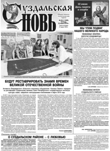 Газета основана 21 марта 1918 г. № 50 (11903) пятница, 22 июня 2018 г. Общественно политическая газета В 2017 году поисковый отряд «Пирамида» из города Холм Новгородской области начал поиск советского бомбардировщика ДБ-3а, не вернувшегося во время Великой Отечественной войны с задания в свой авиаполк. В феврале 2018 года приступили к подъему обломков самолёта и поиску членов экипажа. Было установлено, что самолёт принадлежал 22-му дальнему бомбардировочному авиаполку, и не вернулся с боевого задания 7 августа 1941 года. Были обнаружены и подняты останки двоих из четырех членов экипажа: воздушного стрелка Александра Васильевича Осинцева и старшего стрелка-радиста Тимофея Петровича Кульнева. В кабине бомбардировщика найдено красное знамя с чётко читаемой надписью «Умножим ряды отличников РККА». Кроме знамени поисковики привезли в Суздаль авиационную фуражку, две пилотки и бушлат одного из летчиков. Владимирская областная общественная организация «Поисковое объединение «Часовые Памяти» уже на протяжении 10 лет сотрудничает с Суздальским филиалом Санкт-Петербургского государственного института культуры (бывшее – Суздальское художественно-реставрационное училище) в деле реставрации предметов, обнаруженных поисковиками на местах боев Великой Отечественной войны. Реставрацией будут заниматься студентки специализации «Реставрация и консервация предметов декоративно-прикладного искусства из текстиля» под руководством художника-реставратора высшей категории Людмилы Громыко. Вот что она рассказала: - На данный момент сделаны описания, лабораторные исследования. Основные работы начнутся с сентября, сейчас студенты уходят на практику, успеют лишь обеззаразить предметы, чтобы их можно было хранить летом. В каком состоянии они находятся, пока не начнешь, сказать трудно. Очень сложная работа будет на кителе, на одной из пилоток – они в очень плохом состоянии. Вообще «археологию» должны реставрировать специалисты с хорошей категорией, но поскольку мы уже занимались подобной работой – у нас отработана технология и нам доверяют. Мы не первый раз реставрируем предметы военного времени. Например, несколько лет назад отреставрировали знамя 1941 года: флаг с Соловьевой переправы под Смоленском. Была очень сложная работа, задействовано много народу, сжатые сроки (приходилось реставрировать даже ночами). Сейчас отреставрированное нашими студентами знамя находится в экспозиции Музея неизвестного солдата. Еще на заказ мы сделали 12 его копий, с которыми поисковики производят захоронение останков воинов. Идея еще какая была: молодые люди во время войны защищали Родину от фашистских захватчиков, молодежи и реставрировать предметы, найденные на полях сражений Великой Отечественной войны. С такими предметами у нас работали и реставраторы-графики, и реставраторы музейного металла. То, что наши студенты с большой ответственностью и усердием относятся к такого рода реставрации, понимая ее особую важность, нас очень радует. Галина АЛЕКСЕЕВА. Фото автора. БУДУТ РЕСТАВРИРОВАТЬ ЗНАМЯ ВРЕМЕН ВЕЛИКОЙ ОТЕЧЕСТВЕННОЙ ВОЙНЫ Активисты Владимирского областного поискового объединения «Часовые Памяти» передали на реставрацию Суздальскому филиалу Санкт-Петербургского государственного института культуры знамя, найденное новгородскими поисковиками в мар
