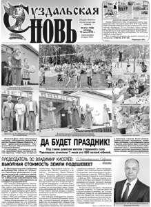 Газета основана 21 марта 1918 г. № 56 (11909) пятница, 13 июля 2018 г. Общественно политическая газета ДА БУДЕТ ПРАЗДНИК! Под таким девизом жители старинного села Павловское отметили 7 июля его 690-летний юбилей. В Законодательном Собрании Владимирской области готовится к принятию законопроект о снижении выкупной стоимости земли. Речь идет об участках, находящихся в областной собственности или государственная собственность на которые не разграничена. Как пояснил председатель Законодательного Собрания Владимир Киселёв, работа над документом началась с обращений граждан и местных депутатов. В ходе выездных дней Заксобрания в районы люди неоднократно ставили вопрос о том, что нынешние ставки - 60% для граждан и 100% для предпринимателей - слишком высоки. Семья Семдьяновых из Судогодского района среди тех, кто столкнулся с подобной ситуацией. В 2013 году супруги решили обзавестись личным хозяйством. Арендовали участок, построили дом. «Было и хлопотно, и затратно, - вспоминает Ирина Семдьянова. - Пришлось собрать много документов, оплатить работы по межеванию и другие необходимые процедуры». В стройку Семдьяновы вложили материнский капитал. Теперь владельцы дома задумались и о выкупе участка. Но сумма в 60% от его кадастровой стоимости для молодой семьи оказалась неподъемной. Сейчас, после принятия нового закона, вопрос о выкупе земельного участка может решиться в ближайшее время. Как пояснил председатель Законодательного Собрания Владимир Киселёв, соответствующий документ разработан по инициативе губернатора Светланы Орловой. Она полностью поддержала введение так называемых «земельных каникул». Закон предусматривает для собственников зданий и сооружений, расположенных на участке, снижение ставки со 100% до 50% от кадастровой стоимости, а для граждан - с 60% до 25%. Рабочая группа, в течение полугода изучавшая и анализировавшая ситуацию, пришла к выводу, что такое решение обосновано и экономически оправдано. Комментируя документ, Владимир Киселёв отметил, что данная мера не только поможет жителям, но и положительно скажется на наполняемости местных бюджетов, поскольку доходы от продажи земельных участков зачисляются в казну муниципалитетов. Снижение ставки рассчитано на срок до 1 января 2022 года. Пресс-служба ЗС области. ПРЕДСЕДАТЕЛЬ ЗС ВЛАДИМИР КИСЕЛЁВ: ВЫКУПНАЯ СТОИМОСТЬ ЗЕМЛИ ПОДЕШЕВЕЕТ В Законодательном Собрании области Отмечали День села в престольный праздник – в Павловском церковь Рождества Пророка Иоанна Предтечи, а 7 июля – православный праздник – Рождество Пророка, Предтечи и Крестителя Господня Иоанна. К празднику готовились заранее, программа была составлена таким образом, чтобы было интересно и взрослым, и детям. Были запланированы детские аттракционы, аниматоры-затейники с разучиванием песен и играми, аквагрим и даже спортивная составляющая. Конечно, были и торжественная часть с чествованием заслуженных жителей-тружеников Павловского, концерт, дискотека и фейерверк. (Продолжение на 2 стр.) ДОРОГИЕ НАШИ ЧИТАТЕЛИ! Хотим обратиться к тем, кто выписал газету «Суздальская новь» на второе полугодие 2018 года: БОЛЬШОЕ СПАСИБО ВАМ ЗА ЭТО! Для редакции это значительная поддержка. Те, кто получает газету в редакции, кому доставляет ее редакционная рассылка, могут выписать ее на второе полугодие в любое время - ограничений нет. Еще раз