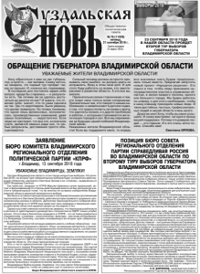 Газета основана 21 марта 1918 г. № 76 (11929) пятница, 21 сентября 2018 г. Общественно политическая газета Хочу обратиться к вам не как губернатор, а просто — как человек. Скажу честно, не ожидала, что первый тур пройдет так, как он прошел. И, конечно же, переживаю. В последние дни постоянно задаю себе вопрос: вроде бы старалась — и результаты есть. Так почему же не удалось достучаться до многих из вас? И знаете, что отвечаю себе: значит, что-то сама сделала не так. Где-то недоглядела. Была уверена, что делаю правильно. Но теперь понимаю, что одних лишь финансовых, экономических, производственных изменений, даже самых позитивных, — недостаточно. Если люди не чувствуют, что все это, в конечном счете, делается именно ради них, то любые результаты, достижения просто обесцениваются. Сильный человек должен не просто признавать свои ошибки, он должен уметь их исправлять. Вижу в этом свой долг. И для этого буду работать со всеми, кто заинтересован в развитии области. А это все вы, жители. Признательна своим сторонникам и тем, кто отдал свои голоса моим соперникам. Признательна тем, кто говорит о нашем наболевшем: о нехватке мест в детских садах, о том, что трудно попасть на прием к врачу, что зарплаты низкие, и о других проблемах и заботах, с которыми сталкиваются жители наших городов и сел. Все мы переживаем за будущее нашей любимой Владимирской земли. Уважаемые жители Владимирской области! Если вы поддержите меня, то впредь все значимые шаги будем предпринимать только вместе. Предлагаю запустить новый проект «Народное решение». Его смысл в том, чтобы люди принимали непосредственное участие в управлении областью, в жизни каждого поселка, малого или большого города. Мы будем работать по-новому, и для этого необходимо, чтобы в нашу команду приходили новые люди. И таких достойных, честных, профессиональных людей в нашей области очень много. Дорогие мои! Хочу, чтобы вы меня услышали. И скажу вам прямо: сегодня я прошу вашей поддержки. Потому что доверие людей — это главное. И я это очень четко поняла. Спасибо вам! Светлана ОРЛОВА. ОБРАЩЕНИЕ ГУБЕРНАТОРА ВЛАДИМИРСКОЙ ОБЛАСТИ 23 СЕНТЯБРЯ 2018 ГОДА В НАШЕЙ ОБЛАСТИ ПРОЙДЕТ ВТОРОЙ ТУР ВЫБОРОВ ГУБЕРНАТОРА ВЛАДИМИРСКОЙ ОБЛАСТИ ВЫБОРЫ-2018 Сегодня Владимирская область стоит перед непростым выбором. 23 сентября 2018 г. во втором туре губернаторских выборов будут соперничать действующий губернатор, единоросс Светлана Орлова и ее «спойлер», выдвиженец от ЛДПР Владимир Сипягин. Как известно, кандидат от КПРФ Максим Шевченко путем провокаций, интриг и фальсификаций со стороны действующей власти не был допущен до участия в губернаторской гонке, что во многом не оставило избирателям Владимирской области реальной возможности выбора. Мы были и остаемся принципиальными и последовательными противниками партии власти и Светланы Орловой, действия которых привели к социально-экономическому кризису в области. Депутатам Законодательного Собрания Владимирской области от КПРФ еще предстоит дать правовую и моральную оценку действиям областной администрации за последние 5 лет. Однако как ответственные политики мы уверены, что переход высшей власти в регионе от действующего руководства к популистам из ЛДПР только углубит кризис. Отсутствие в бюллетене кандидата от КПРФ - это не повод довериться откровенному «спойлеру», политическому «