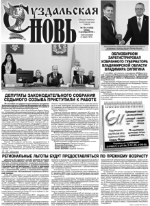 Газета основана 21 марта 1918 г. № 79 (11932) среда, 3 октября 2018 г. Общественно политическая газета 28 сентября на первом после выборов заседании Законодательного Собрания Владимирской области депутаты избрали нового председателя, его замов и решили ряд организационных вопросов. Открыл заседание глава облизбиркома Вадим Минаев, огласивший официальные результаты выборов. В VII созыве Законодательного Собрания Владимирской области представлены пять партий — «Единая Россия», КПРФ, ЛДПР, «Справедливая Россия» и КПСС. Именно их представители поделили между собой 38 депутатских мест. «Единая Россия» получила 23 мандата, из них 7 достались представителям «Единой России» в результате голосования по партийным спискам, а еще 16 мест получили одномандатники. У представителей КПРФ в новом созыве – 7 мест: 5 мандатов досталось списочникам, еще два места в парламенте коммунистам принесли победившие в одномандатных округах. ЛДПР в Законодательном Собрании представлена 4 депутатами, все они прошли в законодательный орган по партийным спискам. Представители «Справедливой России» займут в областном парламенте три кресла: 2 по партийным спискам и одно после победы в округе. Ещё одно место в парламенте досталось представителю КПСС. После чего было зачитано поздравление в адрес вновь избранного состава Законодательного Собрания от председателя Совета Федерации Валентины Матвиенко. В Правительственной телеграмме она пожелала депутатам ЗС Владимирской области плодотворной работы на благо жителей региона и во имя укрепления российской государственности. По традиции, до избрания нового председателя вести собрание доверили старшему по возрасту парламентарию – Юрию Фёдорову. Главным вопросом первого заседания ЗС стало избрание председателя Законодательного Собрания. На эту должность присутствующими депутатами были выдвинуты две кандидатуры. От фракции «Единая Россия» - Владимир Киселёв и от фракции КПРФ - Сергей Казаков. Вновь избранный губернатор Владимирской области Владимир Сипягин поддержал кандидатуру Киселёва. По итогам тайного голосования за него было отдано 27 голосов, семеро депутатов проголосовали – за Сергея Казакова. Таким образом, 28 сентября Владимир Киселёв был избран председателем Законодательного Собрания Владимирской области в третий раз. Вновь избранный председатель ЗС тепло поблагодарил коллег за доверие, а оппонентов за конструктивную критику. Что касается заместителей главы облпарламента, то депутаты поддержали кандидатуры, предложенные председателем Законодательного Собрания. Заместителями председателя Заксобрания стали: - Роман Кавинов («Единая Россия»); - Вячеслав Картухин («Единая Россия»); - Антон Сидорко (КПРФ); - Ольга Хохлова («Единая Россия»). Депутаты ЗС седьмого созыва провели и второе заседание Заксобрания. На нем был принят пакет законов, которые позволяют сохранить региональные льготы вне зависимости от условий назначения страховой пенсии женщинам с 55 лет и мужчинам с 60 лет. Речь идет о внесении изменений в законы о транспортном налоге, о социальной поддержке и социальном обслуживании отдельных категорий граждан. Итак, вне зависимости от новых условий назначения страховой пенсии, будут предоставляться по прежнему возрасту льготы по транспортному налогу для владельцев легковушек с двигателем не