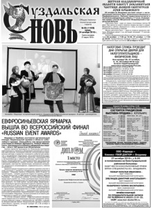 Газета основана 21 марта 1918 г. № 85 (11938) среда, 24 октября 2018 г. Общественно политическая газета ООО «Надежда+» Клиника «ТВОЙ ДОКТОР» г.Владимир 27 октября 2018 г. с 9.00 в поликлинике на базе Суздальской районной больницы БУДУТ ВЕСТИ КОНСУЛЬТАТИВНЫЙ ПРИЕМ ВРАЧИ-СПЕЦИАЛИСТЫ ИЗ г. ВЛАДИМИРА: ПОЖАР НАТАЛЬЯ ИВАНОВНА - врач-невролог высшей квалификационной категории; ЗЯБЛИЦЕВ ДМИТРИЙ АНАТОЛЬЕВИЧ - врач-кардиолог высшей квалификационной категории; НАЗАРЕНКО ГАЛИНА ВАСИЛЬЕВНА - врач-эндокринолог высшей квалификационной категории. ПРИЁМ ПЛАТНЫЙ ПО ПРЕДВАРИТЕЛЬНОЙ ЗАПИСИ ПО ТЕЛЕФОНУ 8 (49231) 2-01-22. САЙТ: www.tvoi-doctor33.ru. ВНИМАНИЕ! ИМЕЮТСЯ ПРОТИВОПОКАЗАНИЯ, ПРОКОНСУЛЬТИРУЙТЕСЬ СО СПЕЦИАЛИСТОМ. Лиц. №ЛО-33-01-002486 от 01.12.2017 выд. деп. здравоохр. адм. Влад. обл. Реклама Недавно в Тамбове состоялся региональный конкурс Национальной премии в области событийного туризма. Свои работы там представляли участники из Северо-Западного, Северо-Кавказского, Центрального и Южного федеральных округов — всего 142 проекта из 26 регионов. Оценка проектов проходила по нескольким критериям: оригинальность замысла и реализации (концепция и ключевая идея события, экономика события, использование современных методик и средств); значимость события для развития и продвижения территории; масштаб вовлечения аудитории (география и количество туристов); взаимодействие с организованным и неорганизованным турпотоком на событие; взаимодействие с представителями турсообщества (объекты размещения, показа, питания, производители турсувениров); мастерство презентации (изложение материала, визуальное сопровождение, содержательность ответов на вопросы). Администрация Суздальского района приняла участие в этом конкурсе с проектом «Суздальская Евфросиньевская ярмарка». «Каждому проекту отводилось всего 8 минут на презентацию, - говорит начальник отдела по туризму, связям с общественностью и СМИ администрации района Марина Пахомова. - Это довольно сложно, за столь короткое время представить проект так, чтобы заинтересовать членов жюри, рассказать организационную составляющую мероприятия и еще доказать, что твой проект лучший среди представленных. Нами было принято решение поделить презентацию нашего проекта на 2 части: первая - техническая часть, она состояла из моего рассказа со слайдами об истории ярмарки, ее организации, взаимодействии со СМИ, турсообществом и партнерами, а вторая часть — анимационная и яркая с суздальскими затейниками-коробейниками в лице муниципального ансамбля «Радуница». Их выступление не оставило равнодушным ни одного из членов жюри». По итогам конкурса проект «Евфросиньевская ярмарка» занял первое место в номинации «Лучшее городское праздничное событие (город с населением до 100 000)» и вышел во Всероссийский финал Национальной премии в области событийного туризма, который пройдет 25 и 26 октября в Нижнем Новгороде. М. ИВАНОВА. Фото автора. ЕВФРОСИНЬЕВСКАЯ ЯРМАРКА ВЫШЛА ВО ВСЕРОССИЙСКИЙ ФИНАЛ «RUSSIAN EVENT AWARDS» Знай наших! НАЛОГОВАЯ СЛУЖБА ПРОВОДИТ ДНИ ОТКРЫТЫХ ДВЕРЕЙ ДЛЯ НАЛОГОПЛАТЕЛЬЩИКОВ – ФИЗИЧЕСКИХ ЛИЦ! Они пройдут 26, 27 октября, 9, 10, 30 ноября 2018 года во всех территориальных налоговых инспекциях России. 26 октября (пятница) с 9-00 до 20-00 27 октября (суббота) с 10-00 до 15-00 09 ноября (пятница) с 09.00 до 18.00 10 ноября (суббота) с 10.00 до 15.00 30 ноября (пятница) с 9-00 до 20-00 В рамка
