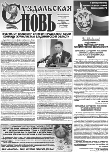 Газета основана 21 марта 1918 г. № 101 (11954) среда, 19 декабря 2018 г. Общественно политическая газета 17 декабря состоялся брифинг Губернатора Владимира Сипягина, в ходе которого он представил журналистам Владимирской области свою команду. В общении приняли участие все, кто на сегодняшний день исполняет обязанности заместителей главы региона. Губернатор поблагодарил представителей СМИ за поддержку и объективное освещение событий в непростой для области период: «Вы верно оценили ситуацию, когда представители старой команды областной администрации своим массовым уходом в длительные отпуска с последующим увольнением тормозили старт нового этапа работы. Заместители бывшего Губернатора отдыхали, когда нужно было ускорять выполнение поручения Президента России по ремонту больницы в Струнино, готовить регион к отопительному сезону, решать вопросы с переселением граждан из аварийного жилья, с долгами за газ, вывозом мусора. И именно вы отстаиваете честь нашей области, когда идут неоправданные информационные атаки федеральных средств массовой информации. Вы показали, что четвертая власть может быть не только критиком, но и самостоятельной созидательной силой». За время губернаторства Владимира Сипягина во Владимирской области произведён глубокий анализ состояния дел во всех сферах жизни, определены задачи по реализации Указа Президента «О национальных целях и стратегических задачах развития Российской Федерации на период до 2024 года», намечены первоочередные шаги. Администрация области, её структурные подразделения функционируют без сбоев. Все муниципальные образования строго по графику вступили в отопительный сезон. «Главная цель работы администрации области под моим началом – это рост благосостояния жителей, сохранение политической стабильности и развитие гражданского общества. В решении этих непростых задач полностью полагаюсь на свою команду – сильную и сплочённую. Она была сформирована очень оперативно (всего за три недели), но при этом вдумчиво. При выборе кандидатов на должности своих замов во главу угла я ставил умение работать на опережение и неоспоримый профессионализм, – подчеркнул Владимир Сипягин. – Именно поэтому в моей команде есть и те, кто работал при прежнем руководстве региона». Среди них – первый заместитель Губернатора, директор департамента финансов, бюджетной и налоговой политики Вячеслав Кузин. Эту должность он занимал при трёх предыдущих руководителях области и зарекомендовал себя как профессионал самого высокого уровня. Из прежнего руководящего состава в должности вицегубернатора продолжает работать Александр Трутнев, который теперь курирует не только сельское хозяйство, но и лесную отрасль. В числе первоочередных задач Александр Юрьевич видит увеличение экспорта сельхозпродукции и расширение посевных площадей, наращивание поддержки агропрома, а также более рациональное использование лесных ресурсов области. Ещё два первых заместителя главы региона и три вицегубернатора пока работают в статусе временно исполняющих обязанности – до их согласования на должности в установленном законом порядке. Приставка «врио» никак не помешала новым руководителям погрузиться в проблематику региона и предпринять необходимые меры, чтобы выполнить все намеченные на 2018 год планы. В частности