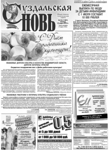 Газета основана 21 марта 1918 г. № 24 (11981) пятница, 22 марта 2019 г. Общественно политическая газета Сайдинг........................... ...........................от 125 руб./шт. от 125 руб./шт. Фасадные панели............. .............от 300 руб./шт. от 300 руб./шт. Клинкерная плитка .......... ..........от 800 руб./кв.м Фасады под кирпич ......... .........от 440 руб./кв.м Термопанели ................... ...................от 470 руб./шт. от 470 руб./шт. Металлический сайдинг...от 300 руб./кв.м от 300 руб./кв.м Окна деревянные/ПВХ .......... ..........от 1000 руб. от 1000 руб. Изделия ДПК/террасные решения ....................................от 1590 руб./кв.м от 1590 руб./кв.м Евровагонка/имитация бруса и блок-хаус/доска пола....... .......от 220 руб./кв.м ООО «ЦЕНТР КРОВЕЛЬНЫХ И ФАСАДНЫХ СИСТЕМ» ПРЕДЛАГАЕТ Реклама Тел.: 8-930-740-55-50, 8 (4922) 44-99-22 http://www.cks-33.ru/ почта: krovlya33@mail.ru Профнастил ................... ...................от 225 руб./кв.м. от 225 руб./кв.м. Металлочерепица............ ............от 255 руб./кв.м от 255 руб./кв.м Гибкая черепица ............. .............от 240 руб./кв.м от 240 руб./кв.м Полимерная кровля ......... .........от 350 руб./кв.м Доборные элементы (собственное производство) Водосточные системы Эконом и Премиум (ПВХ и металлические) .............................................от 200 руб. от 200 руб. Утеплитель .................... ....................от 395 руб./упак. от 395 руб./упак. Пленка гидропароизоляционная .......................................от 22 руб./кв.м от 22 руб./кв.м ДЛЯ КРОВЛИ и ЗАБОРА: ДЛЯ ФАСАДА: Реклама Это профессиональный праздник сотрудников музеев и библиотек, работников театров и концертных организаций, специалистов домов культуры, городских и сельских клубов, коллективов художественной самодеятельности, писателей, артистов, художников, скульпторов и архитекторов, представителей молодёжных творческих движений. Вы реализуете важную социальную миссию – сохраняете и приумножаете уникальное культурно-историческое наследие родной земли, величие родного языка и литературы, утверждаете высокие общечеловеческие ценности, укрепляете благородные традиции просветительства, нравственности и духовности, способствуете развитию культурного и духовного потенциала нашего региона. С каждым годом растёт интерес жителей и гостей области к музыкальным, театральным, событийным мероприятиям и проектам. Наши театры, музеи, библиотеки, дома культуры остаются востребованными благодаря ярким постановкам, экспозициям, другим культурным событиям, но в первую очередь благодаря вам — истинным служителям культуры. Ваш высокий профессионализм, самоотдача помогают нашей области сохранять лидирующие позиции в сохранении и развитии культуры. Мы можем гордиться тем, что на Владимирской земле проводятся крупные всероссийские и международные фестивали, конкурсы, конференции, форумы, реализуются музыкальные и театральные проекты, которые получают самую высокую оценку наших коллег, делают регион заметным на культурной карте страны. Совместными усилиями мы успешно меняем облик учреждений культуры как в областной столице, так и в малых городах и сёлах. И добились в этой работе очень достойных результатов. Преображаются наши дома культуры, музеи, библиотеки. Новые инструменты и оборудование появляются в детских школах искусств и колледжах. Люди вашей профессии – яркие, творческие, увлечённые, инициативные. Истинные подвижники, преданные своему делу, вы помогаете талантам реализоваться в культуре и искусстве. Благодарю вас за беззаветное служение культуре. Здоровья, счастья и вдохнове