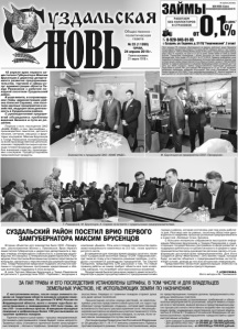 общественно политическая газета УЗДАЛЬСКАЯ 2 № 33 (11990) среда, 24 апреля 2019 г. ИТОГИ НЕДЕЛИ. ВЗГЛЯД ИЗ «БЕЛОГО ДОМА» Во вторник, 16 апреля губернатор Владимир Сипягин совершил рабочую поездку в Муромский и Меленковский районы. В Меленках губернатор принял участие в памятном митинге, посвящённом захоронению бойца Красной Армии, пулемётчика Василия Васильевича Степанова, погибшего в 1941 году при обороне Севастополя. В Муроме глава региона встретился с молодёжью, руководителями предприятий и представителями бизнеса, а также посетил Муромский завод трубопроводной арматуры. На встрече главы региона с предпринимательским сообществом Владимиру Сипягину было передано обращение жителей Селивановского района, выступающих против создания национального парка. В границы предполагаемого нацпарка попадает территория в 40 тысяч гектаров, 22 населенных пункта с населением в общей сложности около 10 тысяч человек. Местные жители в случае изменения статуса земель неизбежно столкнутся с ограничениями хозяйственной и экономической деятельности. Обращение, которое подписали уже пять тысяч человек, передал губернатору предприниматель Александр Кузнецов. Владимир Сипягин пообещал, что мнение людей будет учитываться прежде всего. «На встрече в Муроме мне задали вопрос о национальном парке в Селивановском районе. Люди собрали больше 5 тысяч живых подписей против его создания. Моя позиция такова: я на стороне жителей», - написал губернатор Сипягин на своей официальной страничке в социальной сети «ВКонтакте». АДМИНИСТРАЦИЯ ОБЛАСТИ ОТКАЗАЛАСЬ СОГЛАСОВЫВАТЬ ПРОЕКТ ИЗМЕНЕНИЙ В ГЕНЕРАЛЬНЫЙ ПЛАН ГОРОДА ВЛАДИМИРА После детального изучения проекта изменений Генерального плана, разработанного по заказу мэрии московской фирмой «Гипрогор», специалисты областной администрации выявили многочисленные недостатки в документе. 17 апреля для журналистов был организован пресс-тур в представительство администрации Владимирской области при Правительстве РФ. Здание представительства было построено в 1974 году, оно одноэтажное, барачного типа. Изначально принадлежало Министерству обороны и использовалось как общежитие. Администрации Владимирской области здание передали в 2006 году. При прежнем руководстве региона отремонтировали внутренние помещения. На очереди – обновление фасада, устройство кровли, козырька, благоустройство территории. Изначально на эти работы было запланировано порядка 15 миллионов рублей. Но по требованию Губернатора Владимира Сипягина предварительная сумма расходов на ремонт здания была уменьшена до 9 миллионов рублей. Торги на проведение работ будут объявлены только после прохождения проектно-сметной документации всех соответствующих проверок. Представительство администрации при Правительстве РФ в настоящий момент используется, в первую очередь, для привлечения инвесторов, проведения различных деловых переговоров. Именно привлечение инвесторов губернатор считает главным направлением деятельности московского представительства. Пресс-служба администрации области. Администрация города Суздаля обращает внимание на необходимость соблюдения Правил по обеспечению чистоты, порядка и благоустройства, утверждённых решением Совета народных депутатов города Суздаля от 18.09.2018 года №57, которыми установлено, что: - «Собствен