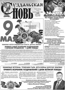 Газета основана 21 марта 1918 г. № 35-36 (11992-11993) среда, 8 мая 2019 г. Общественно политическая газета Этот праздник - дань мужеству, отваге и самоотверженности нашего народа. Мы свято чтим память героевфронтовиков, которые не вернулись с полей сражений. Преклоняемся перед ветеранами Великой Отечественной войны. Мы благодарны труженикам тыла и детям войны, которые внесли свой вклад в общую Победу. Их ратный и трудовой подвиг всегда будет являться для нас примером беззаветной любви к Родине, несгибаемой воли и величия духа. Мы всегда будем помнить, какой ценой была завоевана Победа в Великой Отечественной войне. Подрастающее поколение должно знать имена героев, с уважением относиться к историческому прошлому России, равняться на нравственные ориентиры, заложенные нашими дедами и прадедами. УВАЖАЕМЫЕ ВЕТЕРАНЫ, ТРУЖЕНИКИ ТЫЛА, ДЕТИ ВОЙНЫ! ДОРОГИЕ ЗЕМЛЯКИ! ПРИМИТЕ ИСКРЕННИЕ ПОЗДРАВЛЕНИЯ С ДНЕМ ВЕЛИКОЙ ПОБЕДЫ! С уважением, Григорий Викторович Аникеев, депутат Государственной Думы РФ, председатель ВПОО «Милосердие и порядок». Уважаемые ветераны, дорогие земляки! В этот праздничный день примите искренние пожелания крепкого здоровья, мира, добра и благополучия! С Днем Великой Победы! 9 мая! Как объёмна и значима эта дата, сколько в ней душевной боли и страдания наших отцов, матерей и дедов, ковавших, несмотря на все трудности и лишения, такую долгожданную победу над фашизмом. Проявленные ими сила, мужество и героизм всегда были отличительными чертами нашего народа на протяжении многих веков. Старшее поколение продемонстрировало истинную любовь к Родине, показало прекрасный пример, как поступают настоящие защитники, способные на всё ради Отчизны, ради светлого будущего своих потомков. Они прошли горнило жестоких сражений, но остались скромными и достойными людьми, светящимися изнутри человеческой добротой, всегда внимательными и заботливыми, строгими, но справедливыми. Год за годом уходит в прошлое одна из самых кровопролитных и вместе с тем памятных страниц истории нашего Отечества... Год за годом редеют ряды ветеранов, свидетелей тех страшных событий, но их подвиг по-прежнему значим, ценен и незабываем. Ветеранам дорого далась эта Победа, их подвиги должны навсегда остаться в истории, в памяти последующих поколений, в сердцах миллионов спасённых жизней. Они показали нам истинную цену мира, чистого голубого неба, цену спокойствия и развития. Пусть мир, который подарили нам фронтовики-победители, свобода и воля будут непоколебимым фундаментом для всех. Пусть дух Победы воодушевляет сердца и ведёт вперёд – к новым подвигам, успехам и достижениям. Пусть над головой всегда будет яркое солнце и мирное небо. А отголоски войны останутся только в книгах и фильмах. Спасибо ветеранам за Победу, за то, что мы теперь живём! Низким им поклон! Мира, добра, радости и благополучия! С ДНЁМ ПОБЕДЫ! В.В. СИПЯГИН, Губернатор Владимирской области. В.Н. КИСЕЛЁВ, председатель Законодательного Собрания Владимирской области. С.С. МАМЕЕВ, главный федеральный инспектор по Владимирской области. УВАЖАЕМЫЕ ЖИТЕЛИ ВЛАДИМИРСКОЙ ОБЛАСТИ, ДОРОГИЕ ЗЕМЛЯКИ! ПРИМИТЕ САМЫЕ ИСКРЕННИЕ ПОЗДРАВЛЕНИЯ С ВЕЛИКИМ ПРАЗДНИКОМ – С ДНЁМ ПОБЕДЫ! УВАЖАЕМЫЕ ВЕТЕРАНЫ ВЕЛИКОЙ ОТЕЧЕСТВЕННОЙ ВОЙНЫ, ТРУЖЕНИКИ ТЫЛА, ВДОВЫ, МАЛОЛЕТНИЕ УЗНИКИ КОНЦЛАГЕРЕЙ! ДОРОГИЕ ЗЕМЛЯКИ! Примите самые искренн
