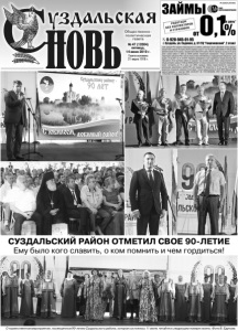 Газета основана 21 марта 1918 г. № 47 (12004) пятница, 14 июня 2019 г. Общественно политическая газета СУЗДАЛЬСКИЙ РАЙОН ОТМЕТИЛ СВОЕ 90-ЛЕТИЕ Ему было кого славить, о ком помнить и чем гордиться! О торжественном мероприятии, посвященном 90-летию Суздальского района, которое состоялось 11 июня, читайте в следующем номере газеты. Фото В. Едунова.