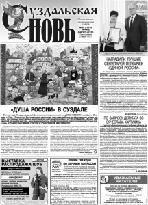Газета основана 21 марта 1918 г. № 62 (12019) пятница, 2 августа 2019 г. Общественно политическая газета (фабрика г.Пятигорск) ШУБЫ от 10 000 руб. от 10 000 руб. ДУБЛЕНКИ. ШАПКИ. ЖИЛЕТЫ НОРКА, МУТОН, КАРАКУЛЬ, БОБРИК, НУТРИЯ. Размеры от 40 до 70. ВЫСТАВКАРАСПРОДАЖА ШУБ Возможна оплата картой. КРЕДИТ* от 6 мес. до 3 лет. РАССРОЧКА** от 6 мес. до 12 мес. СКИДКИ!!! Ждем вас 6 августа с 9.00 до 18.00 в ЦКД (г.Суздаль, Красная пл., д.5) 6 АВГУСТА *Кредит предоставляет ОАО «ОТП Банк», г. Москва ген. лицензия на осуществление банковских операций № 2766 от 04.03.2008 г. **Рассрочку предоставляет ИП Панченко А. Н., ОГРНИП 319265100062394 от 08.05.2019 г. Реклама К депутату Законодательного Собрания области Вячеславу Картухину поступали многочисленные обращения от жителей Суздаля, сел и деревень Суздальского района с просьбой - рассмотреть и помочь решить вопрос с открытием в Суздальской районной больнице кабинета стоматолога-хирурга. « Я не мог оставить эту просьбу без внимания,- говорит Вячеслав Юрьевич,- потому что вопрос важный и касается он здоровья жителей города и района. Большинство обращений было от людей пожилого возраста. И можно представить, в какую проблему выливалось для них посещение стоматолога во Владимире. В связи с этим мной было направлено письмо с депутатским запросом Губернатору области Владимиру Сипягину». В ответе, который получил депутат ЗС В.Картухин от Губернатора области, в частности говорится,что «В настоящее время департаментом здравоохранения администрации Владимирской области проводится работа по лицензированию медицинской деятельности по профилю «хирургическая стоматология». Ориентировочный срок получения лицензии - сентябрь 2019 года. До момента получения лицензии организовано направление пациентов, нуждающихся в хирургическом лечении полости рта, в стоматологические поликлиники г. Владимира по полису ОМС в рамках программы государственных гарантий бесплатного оказания гражданам медицинской помощи». Будем надеяться, что люди еще недолго будут испытывать неудобства. И после получения лицензии в Суздале будет открыт наконец-то кабинет стоматолога-хирурга. А. МАЛАХОВ. ПО ЗАПРОСУ ДЕПУТАТА ЗС ВЯЧЕСЛАВА КАРТУХИНА НАГРАДИЛИ ЛУЧШИХ СЕКРЕТАРЕЙ ПЕРВИЧЕК «ЕДИНОЙ РОССИИ» ПРИЕМ ГРАЖДАН ПО ЛИЧНЫМ ВОПРОСАМ В Общественной приемной местного отделения Партии «ЕДИНАЯ РОССИЯ» Суздальского района состоится прием граждан по личным вопросам: 7 августа c 09:00 до 10:00 прием проведет Петриков Алексей Петрович, депутат Совета народных депутатов Суздальского района по округу №3, председатель местного Совета сторонников партии; с 10:00 до11:00 прием проведет Торопов Александр Николаевич, депутат Совета народных депутатов МО Селецкое по округу №2. 8 августа с 14:00 до 15:00 прием проведет Лаврентьев Константин Иванович депутат Совета народных депутатов Суздальского района по округу №4; с15:00 до16:00 прием проведет Савочкин Андрей Юрьевич, член местного политсовета. Адрес: г. Суздаль, ул. Ленина, д. 78, здание районной библиотеки. На прием можно записаться заранее по тел.: 8-49231-2-05-17, 8-920-623-65-10, 8-900-475-09-21. Если вы не успели оформить подписку на газету «Суздальская новь» на второе полугодие 2019 г., не беда, вы можете оформить подписку с любого месяца. Стоимость подписки на 1 месяц – 50 руб. (получать нужно в редакции); 55 руб. (с доставкой по Суздалю не менее 5 экземпляров на один адрес). Справки по телефону 8 (4