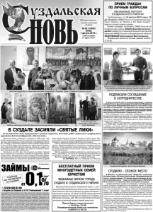 Газета основана 21 марта 1918 г. № 63 (12020) среда, 7 августа 2019 г. Общественно политическая газета Сообщаем вам, что 13 августа 2019 года с 10 до 12 часов в ОМВД России по Суздальскому району (г. Суздаль, ул. Ленина, д. 65) будет осуществляться личный прием граждан. Прием проведет начальник ОМВД России по Суздальскому району ИЛЬИН Дмитрий Александрович совместно с председателем инспекторской комиссии УМВД России по Владимирской области ФЕДУЛЕЕВЫМ Александром Викторовичем. Телефон для записи на личный прием 8 (49 231) 2-19-28. ПРИЕМ ГРАЖДАН ПО ЛИЧНЫМ ВОПРОСАМ ПОДПИСАЛИ СОГЛАШЕНИЕ О СОТРУДНИЧЕСТВЕ СУЗДАЛЮ - ОСОБОЕ МЕСТО УВАЖАЕМЫЕ ЖИТЕЛИ СУЗДАЛЬСКОГО РАЙОНА! 2 августа 2019 года в целях сохранения и защиты самобытности языков народов Российской Федерации на территории Владимирской области состоялось подписание соглашения о сотрудничестве между отделом культуры, спорта, семьи и молодежной политики администрации Суздальского района и автономной некоммерческой организацией «Народный стиль». АНО «Народный стиль» является победителем конкурса Фонда Президентских грантов. С использованием предоставленного гранта им релизуется проект «Межнациональный диалог народов Земли Владимирской через призму национального костюма». Авторы проекта подчеркивают: изучение истории костюма и моды дает людям ключ к познанию обычаев, обрядов и нравов, в костюме невольно отражается практически всё многообразие духовной и умственной жизни каждого народа в определенный период его развития. В Москве, в городском саду «Эрмитаж» открылась фотовыставка «Путешествуйте дома. Владимирская область», приуроченная к 75-летию нашего региона. В числе её организаторов – Туристический портал TRIP2RUS. RU и комитет по туризму областной администрации. «Туризм является одним из секторов, в котором Россия может успешно продвигаться на мировом рынке. И Владимирская область располагает колоссальным потенциалом для такого продвижения, – уверен Губернатор Владимир Сипягин. – Наш регион – средоточие культурных и исторических ценностей, находка для экологического, аграрного, гастрономического туризма. Во Владимирскую область можно приезжать вновь и вновь, каждый раз открывая новые грани интересного, содержательного досуга». Экспозиция выставки объединяет 20 уникальных фотоснимков, где представлены города Владимир, Александров, Гороховец, Гусь-Хрустальный, Муром и Юрьев-Польский. Особое место на выставке отведено Суздалю, который в 2024 году отпразднует 1000-летие. Выставка «Путешествуйте дома. Владимирская область» будет открыта до 31 августа. Суздальский кремль. Фото Сергея Ершова. В рамках Программы «Семейный юрист», реализуемой Владимирским областным отделением Российского детского фонда на средства Президентского гранта, 15 августа 2019 года в здании администрации Суздальского района (г. Суздаль, Красная площадь, каб. 38) состоится бесплатный консультационный прием семей юристом. Прием будет осуществляться с 10.00 до 15.00. Предварительная запись по телефону: 8 (49231) 2 05 18. БЕСПЛАТНЫЙ ПРИЕМ МНОГОДЕТНЫХ СЕМЕЙ ЮРИСТОМ УВАЖАЕМЫЕ ЖИТЕЛИ ГОРОДА СУЗДАЛЯ И СУЗДАЛЬСКОГО РАЙОНА! Художник живет и работает в Суздале с 1988 года, член Союза художников России.Он участник многочисленных областных, региональных, всероссийских, зарубежных выставок. Лауреат городской премии имени Алексея Варганова. Кстат
