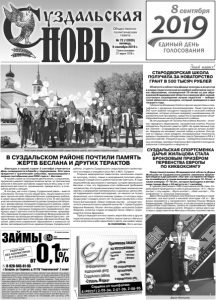 Газета основана 21 марта 1918 г. № 72 (12029) пятница, 6 сентября 2019 г. Общественно политическая газета СТАРОДВОРСКАЯ ШКОЛА ПОЛУЧИЛА ЗА НОВАТОРСТВО ГРАНТ В 500 ТЫСЯЧ РУБЛЕЙ 29 августа в областном Дворце культуры и искусства в рамках педагогической ассамблеи работников системы образования, посвященной 75-летию со дня образования Владимирской области и накануне Дня знаний, состоялось награждение лучших педагогов — победителей областного конкурса, который проводился в мае текущего года. Губернатор Владимир Сипягин вручил им дипломы и сертификаты с денежным вознаграждением. Также грантами в 500 тысяч рублей поощрили городские и сельские учебные заведения, которые успешно внедряют инновационные образовательные программы, среди них Стародворская общеобразовательная школа Суздальского района. 28 лет руководит ей Татьяна Николаевна Жилина - отличник народного образования, заслуженный учитель России, обладатель Почетной грамоты ЦФО «За нравственный подвиг учителя». Стародворская школа одна из лучших в районе. Недаром ее называют школой побед и успехов. Она одной из первых стала внедрять инновационные технологии, дважды становилась обладателем гранта Президента РФ в 1 миллион рублей. Учащиеся школы - победители всевозможных олимпиад, призеры творческих фестивалей и конкурсов, районные стипендиаты и медалисты. Знай наших! СУЗДАЛЬСКАЯ СПОРТСМЕНКА ДАРЬЯ ЖИЛЬЦОВА СТАЛА БРОНЗОВЫМ ПРИЗЁРОМ ПЕРВЕНСТВА ЕВРОПЫ ПО КИКБОКСИНГУ Представительница Владимирской области Дарья Жильцова из Суздальского района завоевала бронзовую медаль в дисциплине «Лоу-кик» на первенстве Европы по кикбоксингу среди юношей и девушек 15-16 лет, а также юниоров 17-18 лет, которое проходило в венгерском городе Дьер с 24 августа по 1 сентября. В турнире участвовало 1540 спортсменов из 39 стран. Соревнования проводились в шести дисциплинах: «К1», «Фуллконтакт с лоу-киком», «Фулл-контакт», «Лайт-контакт», «Поинтфайтинг» и «Сольные композиции». Дарья Жильцова впервые участвовала в подобных соревнованиях, она выступала в весовой категории «52 кг». Девушка занимается у заслуженного тренера России Феруза Карамхудоева. Сборная России, в состав которой входила и суздальская спортсменка, заняла на соревнованиях первое место в общекомандном зачете. Второе и третье места достались представителям Венгрии и Италии соответственно. Дарья Жильцова. Ежегодно в нашей стране 3 сентября отмечается День солидарности в борьбе с терроризмом. Этот день приурочен к трагическим событиям, произошедшим в первые сентябрьские дни 2004 года в г. Беслане. В нашей стране за последние десятилетия, к сожалению, произошло немало террористических актов, но трагические события в Беслане заставили содрогнуться весь мир от невероятной жестокости, проявленной, прежде всего, в отношении детей и женщин. В эти дни, как и вся страна, Суздальский район - вместе с Бесланом. Потому что это общая боль. Акции памяти в этот день прошли во всех образовательных учреждениях района, а самая масштабная прошла у Вечного огня. В ней приняли участие начальник управления по делам гражданской обороны и чрезвычайным ситуациям Суздальского района, секретарь антитеррористической комиссии Суздальского района Данилов Илья, помощник Суздальского межрайонного прокурора, юрист третьего класса Богданова Ксения, председатель правления 