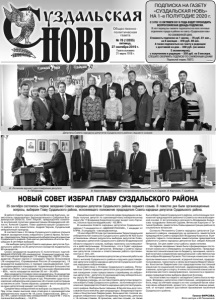 Газета основана 21 марта 1918 г. № 78 (12035) пятница, 27 сентября 2019 г. Общественно политическая газета В работе Совета приняли участие Вячеслав Картухин, заместитель председателя Законодательного Собрания Владимирской области, Олег Леухин, председатель комитета внутренней политики администрации Владимирской области, Алексей Сараев, Глава администрации Суздальского района и его заместители, Андрей Чернов, Суздальский межрайонный прокурор. В соответствии с Уставом Суздальского района открыла первое заседание вновь избранного Совета Ирина Логинова, председатель Территориальной избирательной комиссии Суздальского района. Она кратно рассказала об итогах прошедших 8 сентября выборов: - На выборах депутатов Совета народных депутатов Суздальского района на 20 депутатских мандатов выдвинулось 90 кандидатов. Своих кандидатов выдвинули 6 политических партий: ЕДИНАЯ РОССИЯ (20 кандидатов); Коммунистическая партия Российской Федерации (12 кандидатов); ЛДПР (19 кандидатов); Родная партия (1 кандидат); Партия пенсионеров (16 кандидатов); Справедливая Россия (9 кандидатов). 13 кандидатов выдвинулись в порядке самовыдвижения. Среди выдвинувшихся кандидатов: подавляющее большинство – мужчины (80%), число кандидатов с высшим образованием – 80%, число кандидатов моложе 35 лет - 24,45%. Два кандидата отозвали свои кандидатуры, 9 кандидатам отказано в регистрации. Один кандидат обжаловал постановление об отказе в регистрации в суд. Решением суда постановление избирательной комиссии об отказе в регистрации оставлено в силе. Таким образом, среднее число кандидатов на один депутатский мандат составляло – 4. Средняя явка избирателей на выборах составила 22,57%. При этом самая высокая явка отмечена в одномандатном избирательном округе № 18 (села Гавриловское, Весь) – 35,14%, самая низкая явка избирателей в округе № 7 (часть поселка Боголюбово) – 14,81%. Самый высокий процент голосов среди пришедших на выборы получил депутат по одномандатному избирательному округу № 17 Владимир Кириллов (в округ входят село Торчино, поселок Красногвардейский) - 83,98% . В нынешнем Совете народных депутатов Суздальского района 17 кандидатов от «ЕДИНОЙ РОССИИ», 1 кандидат от КПРФ, 2 кандидата -самовыдвиженца. 12 сентября 2019 года постановлением Территориальной избирательной комиссии Суздальского района № 423 были установлены общие результаты выборов депутатов Совета народных депутатов Суздальского района Владимирской области седьмого созыва, выборы признаны состоявшимися и действительными. Установлено, что в Совет народных депутатов избрано 20 депутатов. Впереди у Совета народных депутатов сложная и ответственная работа протяженностью в пять лет. Ирина Логинова пожелала депутатам успешной работы на благо жителей Суздальского района и вручила удостоверение депутата Совета народных депутатов Суздальского района народным избранникам. В соответствии с Уставом Суздальского района, Регламентом Совета народных депутатов для дальнейшего ведения заседания слово предоставили старейшему из избранных депутатов – депутату по одномандатному избирательному округу № 10 Владимиру Русакову. В первую очередь, из состава Совета депутатам предстояло избрать Главу Суздальского района , исполняющего полномочия председателя Совета народных депутатов Суздальского района. Выборы были тайными. В бюл
