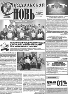 Газета основана 21 марта 1918 г. № 102 (12059) пятница, 20 декабря 2019 г. Общественно политическая газета Пенсионный фонд России образован 20 декабря 1990 года для государственного управления финансами пенсионного обеспечения . ПФР-самостоятельный внебюджетный фонд, денежные средства которого не входят в состав федерального бюджета, других бюджетов и фондов и не подлежат расходованию на другие цели, кроме выплаты пенсий. Деятельность фонда включает в себя не только выплату пенсий, это крупнейшая федеральная система оказания государственных услуг в России, которая сопровождает человека с самого рождения. Предоставление этих услуг на территории Суздальского района и г. Суздаля успешно осуществляет Государственное учреждение-Управление Пенсионного фонда Российской Федерации в г. Суздале. Коллектив управления обеспечивает своевременное установление и выплату всех видов страховых и государственных пенсий и социальных выплат, отнесенных законодательством Российской Федерации к компетенции ПФР, а также средств материнского (семейного) капитала, выплаты и инвестирование средств пенсионных накоплений, прием отчетности от плательщиков страховых взносов, в части сведений о застрахованных лицах для ведения индивидуального (персонифицированного) учета. Основными задачами при организации всех процессов являются клиентоориентированность, информационно-разъяснительная работа, повышение качества работы и создание доступной среды для маломобильных граждан. Коллектив управления в составе 35 человек во главе с руководителем Тяглецовой Н.М. обслуживает 13,5 тысяч пенсионеров, 10 тысяч получателей социальных выплат всех видов и 2,5 тысячи страхователей, достигая при этом высоких результатов. Работа коллектива строится на принципах взаимного уважения, поддержки и ответственности за результаты деятельности каждого специалиста. С самого основания управления в 2001 году трудятся Притуманова Н.В., Гончаренко Н.Е, Запруднова О.К., Максимова Т.В., Староверова Е.Н., Якимова С.А. Все специалисты управления достойны большой благодарности за их нелёгкий, но очень нужный и востребованный гражданами труд. При этом хочется отметить огромную самоотдачу и высокий профессионализм начальника отдела назначения и выплаты пенсий Даниловой Е.В. Специалисты учреждения с заботой и участием относятся к своим коллегам, вышедшим на пенсию, по достоинству оценивают их вклад в работу управления. С момента основания, 16 лет руководила управлением Нефедова Г.М. Многих специалистов научили работать Якимова В.И. и Ломакина Л.И. Но время идет и на пороге нового 2020 года хочется рассказать о том, какие изменения произойдут в пенсионном и социальном обеспечении с 1 января 2020 года. Суммы страховых пенсий неработающих пенсионеров будут увеличены на 6,6%,. Прожиточный минимум для выплаты федеральной социальной доплаты к пенсии увеличится до 9077 рублей. На 3,0 % проиндексируются суммы материнского (семейного) капитала, его размер будет составлять 466617 рублей. При этом распорядиться средствами (частью средств) материнского (семейного) капитала на ежемесячную выплату в связи с рождением (усыновлением) второго ребенка смогут семьи, среднедушевой доход которых не превышает 2,0-кратную величину прожиточного минимума трудоспособного населения, установленную во Владимирской области, в те