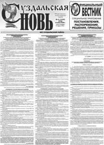 Газета основана 21 марта 1918 г. № 41 (12102) среда, 10 июня 2020 г. Общественно политическая газета СПЕЦИАЛЬНОЕ ПРИЛОЖЕНИЕ ПОСТАНОВЛЕНИЯ, РАСПОРЯЖЕНИЯ, РЕШЕНИЯ, ПРИКАЗЫ МО СУЗДАЛЬСКИЙ РАЙОН ПОСТАНОВЛЕНИЕ ГЛАВЫ СУЗДАЛЬСКОГО РАЙОНА ВЛАДИМИРСКОЙ ОБЛАСТИ от 02.06.2020 № 12 О назначении публичных слушаний по вопросу утверждения проекта внесения изменений в проект планировки территории под комплексное освоение в целях жилищного строительства в с. Сновицы, микрорайон Милино В соответствии с Федеральным законом от 06.10.2003 № 131-ФЗ «Об общих принципах организации местного самоуправления в Российской Федерации», Градостроительным кодексом Российской Федерации, Уставом Суздальского района Владимирской области, решением Совета народных депутатов Суздальского района от 25.04.2018 года №29 «Об утверждении Положения об организации и проведении общественных обсуждений или публичных слушаний по вопросам в сфере градостроительной деятельности на территории муниципального образования Суздальский район», руководствуясь Правилами землепользования и застройки муниципального образования Новоалександровское Суздальского района Владимирской области, на основании заявления ООО «РингАгро», постановляю: 1. Назначить на 15 июля 2020 года в 11 часов 00 минут проведение публичных слушаний по вопросу утверждения проекта внесения изменений в проект планировки территории под комплексное освоение в целях жилищного строительства в с. Сновицы, микрорайон Милино. 2. Определить местом проведения публичных слушаний здание МКУК «Новоалександровский КДЦ» по адресу: Суздальский район, с. Сновицы, ул. Вороновой, д. 2. 3. Срок проведения публичных слушаний с 10 июня 2020 года по 31 июля 2020 года. 4. Организатором публичных слушаний является комиссия по подготовке проектов в сфере градостроительной деятельности на территории муниципального образования Суздальский район Владимирской области, состав которой утвержден постановлением администрации Суздальского района от 28.04.2018 N 983 «О комиссии по подготовке проектов в сфере градостроительной деятельности на территории муниципального образования Суздальский район Владимирской области». 5. Разместить проект и информационные материалы к нему на официальном сайте администрации Суздальского района в сети «Интернет» на период с 18 июня 2020 года по 14 июля 2020 г. 6. Провести экспозицию проекта в здании администрации Суздальского района по адресу: г. Суздаль, ул.Красная площадь, д. 1, каб. 55 в срок с 18 июня 2020 года по 14 июля 2020 года. 7. Установить, что в период размещения проекта и информационных материалов к нему на официальном сайте администрации Суздальского района в сети «Интернет» и проведения экспозиции проекта участники публичных слушаний имеют право вносить предложения и замечания: 1) в письменной или устной форме в ходе проведения собрания участников публичных слушаний; 2) в письменной форме в адрес организатора публичных слушаний: 601293, Суздаль, ул.Красная площадь, д.1; 3) посредством записи в журнале учета посетителей экспозиции проекта. 8. Контроль за исполнением настоящего постановления возложить на заместителя Главы администрации района по жизнеобеспечению и общественной безопасности. 9. Настоящее постановление вступает в силу со дня его подписания, подлежит опубликованию в газете «Суздальская новь» и размещению на официальном 