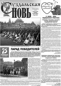 Газета основана 21 марта 1918 г. № 43 (12104) пятница, 19 июня 2020 г. Общественно политическая газета Примите самые искренние поздравления с наступающим профессиональным праздником - Днем медицинского работника. Этот праздник по праву можно считать днем всенародного признания благородного труда врачей, медицинских сестер, всех работников здравоохранения, кто сердцем чувствует боль и страдания людей и помогает сохранить самое дорогое – здоровье и жизнь. Вы связали свою жизнь с нелёгкой, ответственной, но самой благородной и востребованной в обществе профессией. В медицину приходят по призванию. Ведь для того, чтобы помогать людям, мало обладать глубокими знаниями и отработанными навыками - необходима душевная щедрость, чуткость и благородство. В самые трудные минуты вы приходите на помощь, проявляя высочайший профессионализм и ответственность, сострадание и доброту! В этом году ваш профессиональный праздник совпал с периодом пандемии COVID-19 и многие из вас свой профессиональный праздник встретят на передовой в борьбе с вирусной инфекцией. Baш кpyглocyтoчный тpyд и вepнocть вpaчeбнoмy дoлгy зacлyживaют caмoй выcoкoй oцeнки и yвaжeния. Искренне благодарим врачей и медицинских сестер, санитарок и лаборантов, всех людей в белых халатах за постоянную готовность придти на помощь, приложить все свои силы, знания и опыт в борьбе за жизнь и здоровье людей, за отзывчивость и милосердие. От всей души желаем вам и вашим близким крепкого здоровья, успехов, счастья и благополучия! Пусть будет больше внимания и слов благодарности от пациентов, пусть меньше невзгод и трудностей будет в вашей работе! А.П. САРАЕВ, Глава администрации Суздальского района. В.В. КИРИЛЛОВ, Глава Суздальского района. 21 ИЮНЯ – ДЕНЬ МЕДИЦИНСКОГО РАБОТНИКА УВАЖАЕМЫЕ МЕДИЦИНСКИЕ РАБОТНИКИ, ВЕТЕРАНЫ ОТРАСЛИ ЗДРАВООХРАНЕНИЯ СУЗДАЛЬСКОГО РАЙОНА! УВАЖАЕМЫЕ РАБОТНИКИ И ВЕТЕРАНЫ СИСТЕМЫ ЗДРАВООХРАНЕНИЯ ВЛАДИМИРСКОЙ ОБЛАСТИ! Сердечно поздравляю вас с профессиональным праздником – Днём медицинского работника! Вы – без преувеличения герои нашего времени. Именно от вас зависят жизни и здоровье сотен тысяч жителей региона. Эпидемия новой коронавирусной инфекции в этом году заставила вас мобилизоваться. Знаю, как самоотверженно вы исполняете свой профессиональный долг, как героически боретесь за здоровье каждого пациента, трудитесь практически в круглосуточном режиме. Ситуация показала, насколько сильны и профессиональны медицинские коллективы Владимирской области. За короткий срок нами были развёрнуты инфекционные госпитали. Многие из вас оперативно освоили новые для себя дополнительные специальности, методики и технологии. Сейчас региональная система оказания помощи пациентам с COVID-19 чётко работает и продолжает развиваться. В особых условиях приходится работать специалистам, оказывающим помощь людям с острыми заболеваниями, наблюдающим хронических больных. Спасибо всем, кто обеспечивает непрерывность такой помощи, невзирая на пандемию. В условиях распространения новой коронавирусной инфекции на федеральном и региональном уровнях был принят целый ряд мер по поддержке медиков. Значительные средства направлены на дополнительные выплаты персоналу медучреждений за особые условия труда и повышенный риск. Система здравоохранения – это абсолютный приоритет социального блока. Мы 