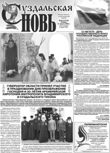 Газета основана 21 марта 1918 г. № 62 (12123) пятница, 21 августа 2020 г. Общественно политическая газета *Акция проходит с 5.08 по 10.10.2020 г. ИП Щанникова Л.Ю. ОГРН 320332800029030 от 30.07.2020 г. Реклама. ИП Щанникова Л Ю дит с 5 08 по 10 10 2020 г Все виды стрижек, укладки, оформление бороды и усов, удаление нежелательных волос на лице полимерным воском. Окрашивания. Для педагогов, школьников, студентов - скидка на стрижки в августе и сентябре*. Ждем вас по адресу: г. Суздаль, ГК «Пушкарская слобода», ул. Ленина, 45 (спа-центр). Телефон 8 919 004 28 02, Лариса. ПАРИКМАХЕРСКАЯ В ГК «ПУШКАРСКАЯ СЛОБОДА» ПРИГЛАШАЕТ ! УВАЖАЕМЫЕ СУЗДАЛЬЦЫ! От имени администрации и Совета народных депутатов Суздальского района поздравляем вас с Днем Государственного флага Российской Федерации! Наш флаг узнаваем во всем мире как флаг великой страны с богатой историей и традициями государственности. Овеянный ратной и трудовой славой многих поколений россиян, он и сегодня объединяет наш народ в стремлении сделать страну могучей и процветающей. Он вдохновляет нас на труд, научные достижения и спортивные рекорды. Наш район – малая часть великой страны, но именно здесь мы живем и стремимся сделать этот уголок Отечества уютным, благоустроенным и процветающим. В этот праздничный день от всей души желаем жителям Суздальского района успехов во всех добрых начинаниях на благо нашего Отечества. Пусть в ваших сердцах всегда будет чувство гордости за свою Родину, свой народ и родной край! А.П. САРАЕВ , Глава администрации Суздальского района. В.В. КИРИЛЛОВ, Глава Суздальского района. УВАЖАЕМЫЕ ЖИТЕЛИ ВЛАДИМИРСКОЙ ОБЛАСТИ! Поздравляю вас с Днём Государственного флага Российской Федерации! С каждым годом этот праздник становится всё более заметным и значимым общественно-политическим событием, укрепляющим преемственность и духовную связь поколений. Триколор олицетворяет богатую и славную историю Российского государства. Он – предмет национальной гордости и наш народный оберег. У жителей Владимирской земли – особое отношение к символам силы, славы, единства и независимости нашего Отечества. Нам посчастливилось родиться и жить там, где много веков назад зарождалась российская государственность. Искренняя любовь к Родине у нас в крови. Она выражается в подвигах защитников Отечества, в выдающихся трудовых, научных, культурных и спортивных достижениях наших земляков. Низкий поклон всем жителям Владимирской области, которые вносят свой вклад в укрепление Российского государства. День флага России – праздник настоящих патриотов. И сегодня наша общая задача — воспитывать в подрастающем поколении бережное отношение к государственной символике, чувство уважения к родному краю, его истории, чтобы вслед за нами они смогли своими делами и на своём примере доказать любовь и преданность родной стране. Мы вместе создаём историю России под флагом, цвета которого символизируют силу, веру и благородство – качества, во все времена помогавшие нам побеждать. Дорогие земляки! Желаю вам мира и счастья, крепкого здоровья, стабильности и уверенности в завтрашнем дне. Пусть в ваших домах царят благополучие и согласие. Пусть все планы и стремления непременно воплотятся в жизнь. В.В.СИПЯГИН, Губернатор области. 22 АВГУСТА - ДЕНЬ ГОСУДАРСТВЕННОГО ФЛАГА РОССИЙСКОЙ ФЕДЕРАЦИИ Губернатор области Владимир Сипягин тепло поздрав