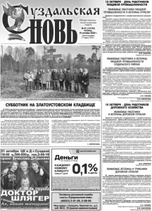 Газета основана 21 марта 1918 г. № 81 (12142) пятница, 16 октября 2020 г. Общественно политическая газета Реклама ИП Кабанов Л.Ю. ОГРНИП 313774603101050 от 26.06.2018 г. Реклама - Несмотря на длительный дождь накануне, субботник 10 октября на Златоустовском кладбище состоялся. Вероятно, когото он всё же испугал, в работе приняли участие всего около 30 человек. Как всегда мы благодарны Суздальскому индустриально-гуманитарному колледжу. Во главе с директором Василием Малашкиным и заведующим отделением автомобильного транспорта и механизации сельского хозяйства Алексеем Логиновым группа студентов в составе шести юношей и одной девушки трудилась ответственно и добросовестно. В субботнике также приняли участие члены президиума Суздальского отделения ВООПИиК (меньше, чем обычно), четыре депутата Совета народных депутатов г. Суздаля, в том числе вновь избранная Глава города Ольга Цымзина, педагоги и одна студентка Суздальского филиала СПбГИК, сотрудники музея. Уже восьмой год с нами регулярно трудится работник МБУ г. Суздаля «Благоустройство» Иван Васильев. В этот раз принял участие в субботнике и директор учреждения, депутат городского Совета Алексей Стариков. Был убран большой ствол упавшего дерева в центре кладбища, под которым открылось гранитное надгробие, возможно, известных суздальских жителей Жинкиных. К сожалению, чтобы поднять его и прочитать надпись, необходима техника. Рядом находится могила еще одного Жинкина – Василия Яковлевича, долгое время добросовестно служившего старостой Воскресенской церкви, что на Торговой площади. Во время субботника откопан и поднят памятник с могилы ещё одних коренных жителей Суздаля - Ивана Ксенофонтовича и его жены Ольги Ивановны Блинниковых. В ближайшем окружении находится ещё много, к сожалению, валяющихся в земле памятников наших сограждан XIX - начала ХХ вв. Хочу поблагодарить всех, принявших участие в субботнике. Г. КИРИЛЛОВА. СУББОТНИК НА ЗЛАТОУСТОВСКОМ КЛАДБИЩЕ В 1972 году Златоустовское кладбище г. Суздаля было закрыто для захоронений. С этого времени оно постепенно приходит в запустение, зарастает деревьями, многие из которых уже сухие, кустарниками. В настоящее время лишь немногие могилы содержатся в порядке родственниками. Ежегодно Суздальское отделение ВООПИиК организует здесь субботники, пытаясь хоть как-то облагородить памятное место. Помогают ВООПИиКовцам в этом благом деле энтузиасты, болеющие душой за сохранение исторических мест Суздаля. Это и дань памяти нашим предкам. Как прошел последний субботник рассказала председатель президиума местного отделения Алла ЗАЙКОВА: Примите поздравления с профессиональным праздником! Пищевая отрасль Владимирской области – один из самых динамично развивающихся секторов экономики, обеспечивающий продовольственный рынок продукцией широкого, разнообразного ассортимента, качество которой завоевало любовь и доверие жителей не только нашего, но и других регионов. Это подтверждают и высокие награды, которые наши компании получают на всероссийских и международных выставках-ярмарках и конкурсах. За всем этим стоит ежедневный кропотливый труд работников пищевой промышленности, предприятий общественного питания. Благодаря вашему профессионализму и неустанной работе растут объёмы производства, внедряются новые технологии, расширяется ассорти
