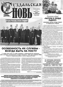 Газета основана 21 марта 1918 г. № 90 (12151) среда, 18 ноября 2020 г. Общественно политическая газета В нашем ОМВД отделение участковых уполномоченных полиции (ОУУП) одно из самых больших по численности подразделений, а для профилактики преступности и формирования положительного имиджа наших стражей порядка и, пожалуй, одно из главнейших. Участковые всегда в гуще людей и центре событий, откликнуться на призыв о помощи они готовы и днём, и ночью. Пандемия коронавируса ни сколько не приостановила их служебную деятельность, а лишь видоизменила и усложнила её. Но суздальские сотрудники ОУУП добиваются стабильно высоких результатов в работе. За 10 месяцев текущего года подразделением были приняты и рассмотрены 4410 сообщений и заявлений граждан. По-прежнему есть традиционные - о кражах, семейных конфликтах, пьянстве… А есть с требованием разделить имущество супругов, ликвидировать бродячих собак, принудить подростков не курить и т. п. Суздальские участковые уполномоченные полиции имеют высшее юридическое образование. Трудиться эффективно участковым уполномоченным способствует тесный, хорошо налаженный контакт с населением, старостами и активистами-общественниками, представителями власти на местах. В этом году участковые уже провели 237 сходов-встреч с гражданами. Сотрудники ОУУП с начала этого года раскрыли 77 преступлений, составили 876 протоколов об административных правонарушениях. А вот ещё один пример, который характеризует заслуженный авторитет участковых у населения – в прошедшем недавно во Владимирской области онлайн-голосовании второго (регионального) этапа Всероссийского конкурса МВД России "Народный участковый - 2020" второе место (!) занял наш земляк старший лейтенант полиции И.А. Пряхин. Руководителями подразделения ОУУП в ОМВД являются подполковники полиции Александр Евгеньевич Беспалов, которому непосредственно подчиняются все участковые, и Алексей Юрьевич Волков (он кроме этого подразделения курирует ещё и отделение по делам несовершеннолетних). Обоих смело можно назвать ветеранами полиции (они прошли по многим её ступенькам). Они пример для подражания подчинённым. Так А.Е. Беспалов служит в ОМВД с 2004 года, а успешно возглавляет подразделение с 2018 года, имеет целый ряд наград и поощрений. ОМВД России по Суздальскому району. Фото В.Сухова. ОСОБЕННОСТЬ ИХ СЛУЖБЫ - ВСЕГДА БЫТЬ НА ПОСТУ 17 ноября своих коллег по службе поздравили с профессиональным праздником — Днём участкового уполномоченного полиции (отмечается с 1923 года) сотрудники ОМВД России по Суздальскому району и жители Суздальской земли. Сотрудники отделения участковых уполномоченных полиции ОМВД по Суздальскому району. Близится время Новогодних и Рождественских праздников. Время чудес и подарков. Дети с надеждой и верой на исполнение желаний ждут эти самые загадочные праздничные дни, открывающие мир добрых сказок и волшебства. Но, увы, далеко не всем эта сказка доступна. К сожалению, в силу обстоятельств, во многих семьях не всегда есть возможность порадовать детей подарками. В преддверии Нового года ГБУСОВО «Комплексный центр социального обслуживания населения Суздальского района» проводит ежегодную акцию «Растопи в сердце льдинку», направленную на сбор сладких подарков для детей c ограниченными возможностями здоровья и детей из малообеспеченных сем
