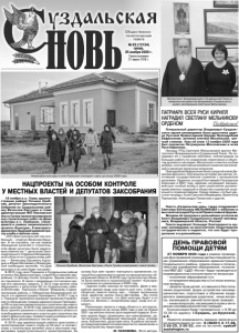 Газета основана 21 марта 1918 г. № 93 (12154) среда, 25 ноября 2020 г. Общественно политическая газета ДЕНЬ ПРАВОВОЙ ПОМОЩИ ДЕТЯМ 27 НОЯБРЯ 2020 года в рамках проведения Дня правовой помощи детям специалистами управления образования администрации Суздальского района, отдела опеки и попечительства управления образования, психологом МБУ ДО «ЦДО «Исток» будут проводиться индивидуальные консультации по вопросам: - получения образования н/л; - отчуждения имущества н/л и иные жилищные вопросы; - защиты прав детей, оставшихся без попечения родителей, форм устройства несовершеннолетних, подготовка и обучение кандидатов в замещающие родители, иные вопросы, касающиеся данной категории граждан; - иным вопросам, касающимся прав и интересов несовершеннолетних граждан. Консультации будут проводиться с 9.30 до 12.30 по адресу: г.Суздаль, ул.Крупской, д.4. Имеется возможность заранее записаться на консультацию по тел.: 8 (49231) 2-17-38, 2-50-23, 2-50-32, или по эл.почте: opeka@ suzdalregion.ru 18 ноября и.о. Главы администрации района Татьяна Срибная, депутат Законодательного Собрания по Суздальскому району Вячеслав Картухин и глава администрации МО Павловское Ольга Гусева проконтролировали ход строительных работ на Доме культуры в с. Порецкое, строящемся в рамках национального проекта «Культура». К ним присоединились будущий администратор клуба и жители села. «Этот Дом культуры для нас особенный» - отметил Вячеслав Юрьевич. И не случайно, так как первое обращение жителей о строительстве Дома культуры было адресовано именно им — депутатам Законодательного Собрания Владимирской области по Суздальскому району — Вячеславу Юрьевичу Картухину и Юрию Матвеевичу Федорову. Они пообещали жителям, что Дом культуры в их селе будет построен. В 2015 году село Порецкое в Суздальском районе осталось без Дома культуры, старый был признан аварийным, по фасаду пошли трещины. Здание ремонту не подлежало. В связи с аварийным состоянием здания его пришлось закрыть. С 2015 года жители села обращались к депутатам ЗС по Суздальскому району Вячеславу Картухину и Юрию Федорову, в администрацию района, к Губернатору Владимирской области и в администрацию Президента. В 2017 году в с. Порецкое приезжала выездная приемная Управления по обращению граждан администрации Президента РФ по рассмотрению вопроса строительства нового Дома культуры. В 2018 году администрацией района было принято решение о сносе аварийного объекта и освобождении земельного участка для строительства нового Дома культуры. Совместными усилиями это решение было реализовано в том же году. В 2018 году администрация района приступила к проектированию нового клуба на 50 мест в соответствии с количеством жителей села и местными нормативами градостроительного проектирования. За НАЦПРОЕКТЫ НА ОСОБОМ КОНТРОЛЕ У МЕСТНЫХ ВЛАСТЕЙ И ДЕПУТАТОВ ЗАКСОБРАНИЯ основу был взят проект повторного применения, который был реализован в одном из муниципальных образований области. В 2019 году строительство объекта было включено в национальный проект «Культура» с условием его реализации в 2020 году. «Здание клуба никогда не пустовало. Даже в аварийное здание люди шли просто для того, чтобы пообщаться, вместе попить чаю. - говорит жительница села, директор школы Ольга Дегтярева. - Мы очень рады, что вы сказали, что Дом культуры будет и он строится. Жители с нетерпение