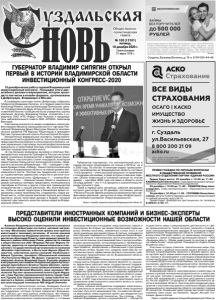 Газета основана 21 марта 1918 г. № 100 (12161) пятница, 18 декабря 2020 г. Общественно политическая газета Реклама Реклама 15 декабря начал работу первый Владимирский инвестиционный конгресс. Площадки этого масштабного делового мероприятия, которое проходит в том числе в онлайн-формате, организованы в Доброграде, Владимире и Москве. В конференц-зале парк-отеля «Доброград» собрались Губернатор Владимир Сипягин, его первый заместитель Александр Ремига, сенатор Александр Пронюшкин, депутат Государственной Думы Игорь Игошин. В числе представителей бизнес-сообщества были учредитель группы компаний «Аскона» Владимир Седов, основатель и учредитель ООО «НТС-Лидер» Олег Калинин и председатель наблюдательного совета ООО «ИТКОЛ» Александр Викторов. Участников конгресса по видео-конференц-связи приветствовали Министр промышленности и торговли Российской Федерации Денис Мантуров, Министр экономического развития РФ Максим Решетников и президент Торгово-промышленной палаты России Сергей Катырин. Авторитетные федеральные эксперты, представители разных ветвей и уровней власти, опытные и успешные представители российского и иностранного бизнеса, самые заряженные стартаперы, высокопрофессиональные журналисты и талантливые блогеры участвовали в мероприятии посредством онлайн-моста. «В год больших всемирных вызовов и ответных беспрецедентных инициатив Президента России наступило время уникальных возможностей и эффективных решений. Уверен, наш конгресс станет площадкой, на которой самые смелые планы начнут воплощаться в жизнь. Недаром его латинская аббревиатура – VIC – совпадает с первыми буквами слова «победа». Наша стратегическая цель – вывести Владимирскую область на новый уровень экономического роста. Поэтому мы приурочили к конгрессу торжественную церемонию открытия в регионе особой экономической зоны «Доброград-1», – отметил Владимир Сипягин. – Администрация области нацелена в рамках конгресса наглядно представить потенциальным партнёрам из России и других стран все преимущества сотрудничества с нашим регионом. Мы заинтересованы, чтобы на нашей территории в ближайшее время открывались новые производства, создавались новые рабочие места, чтобы нашим землякам платили достойные зарплаты, росли налоговые доходы в бюджет, которые позволят нам повысить качество жизни людей во Владимирской области». ГУБЕРНАТОР ВЛАДИМИР СИПЯГИН ОТКРЫЛ ПЕРВЫЙ В ИСТОРИИ ВЛАДИМИРСКОЙ ОБЛАСТИ ИНВЕСТИЦИОННЫЙ КОНГРЕСС-2020 Губернатор подчеркнул, что экономический рост в нашем регионе продолжался не только в 2019-м, но и в 2020 году. По итогам 10 месяцев индекс промышленного производства во Владимирской области составил 114,6 процента – очень высокий результат по сравнению с соседними регионами, в ряде которых отмечено падение. Объём инвестиций в основной капитал по итогам января – сентября 2020 года составил в области почти 58 млрд рублей – это 111,6 процента к аналогичному периоду прошлого года. Также в первый день конгресса, рабочая программа которого рассчитана до 22 декабря, состоялась сессия «Регионы России: Время уникальных возможностей и эффективных решений», дискуссия на тему «Инфраструктура устойчивого развития. Новые возможности». Пресс-служба администрации Владимирской области. В рамках Владимирского инвестиционного конгресса на площад