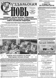 Газета основана 21 марта 1918 г. № 102 (12163) среда, 23 декабря 2020 г. Общественно политическая газета В состав Госсовета вошли главы регионов, парламентарии, чиновники и представители общественных объединений. Пост председателя занимает глава государства. Всего в этом государственном органе – 104 человека. В состав Госсовета, который возглавляет Президент России Владимир Путин, вошли Председатель Правительства РФ Михаил Мишустин, Председатели Совета Федерации и Государственной Думы Валентина Матвиенко и Вячеслав Володин, лидеры думских фракций, главы регионов и полномочные представители Президента в федеральных округах. Кроме того, в Госсовет включены руководитель Администрации Президента Антон Вайно, его первый заместитель Сергей Кириенко и помощник главы государства Игорь Левитин. Документ опубликован на официальном портале правовой информации. Закон о Государственном совете РФ Президент России Владимир Путин подписал 8 декабря 2020 года. Документ, подготовленный для реализации принятых поправок к Конституции РФ, определяет место Госсовета в системе органов публичной власти, его статус, порядок формирования и деятельности. Государственный совет Российской Федерации – это конституционный государственный орган, формируемый главой государства для обеспечения согласованной работы органов власти, определения основных направлений внутренней и внешней политики государства и приоритетных направлений социально-экономического развития страны. Этот орган будет готовить предложения по общим направлениям регионального и муниципального развития, по важнейшим вопросам государственного строительства и укрепления основ федерализма и местного самоуправления, а также по вопросам, касающимся взаимоотношений уровней публичной власти. Также он сможет содействовать разрешению разногласий между федеральными и региональными властями, обсуждать кадровую политику. Пресс-служба администрации области. ПРЕЗИДЕНТ РОССИИ ВКЛЮЧИЛ ГУБЕРНАТОРА ВЛАДИМИРА СИПЯГИНА В СОСТАВ ГОСУДАРСТВЕННОГО СОВЕТА РОССИЙСКОЙ ФЕДЕРАЦИИ ПОДВЕЛИ ИТОГИ КОНКУРСА НА ЛУЧШУЮ НОВОГОДНЮЮ ЕЛОЧНУЮ ИГРУШКУ 21 декабря новый состав Государственного совета Российской Федерации утверждён Указом главы государства Владимира Путина. После долгих обсуждений и споров члены жюри выбрали 15 победителей в различных номинациях. В номинации индивидуальная работа в возрастной категории от 7 до 10 лет: Свободин Илья («Снеговичок») - 1 место. Львова Полина («Елочка в сапожках») - 1 место. Лукьянов Артем («Шишечный шар») - 2 место. Федюшина Галина («Пряничный домик») - 2 место. Дунаева Оксана («Я из Дедморозовки») - 3 место. Штефко Василий («Елка») - 3 место. В номинации индивидуальная работа в возрастной категории от 11 до 15 лет: Кудряшова Евгения («Бычок») - 1 место. Яковлева Виктория Сергеевна («Снежный ангел») - 2 место. Труфанова Александра («Хранитель новогодней елки») - 3 место. Зарубина Екатерина Максимовна («Зимнее настроение») - 3 место. В номинации коллективная работа «Игрушка всей семьей»: Юдин Дмитрий («Друг Деда Мороза») - 1 место. Королькова Иветта («Год крысы уходит, Год быка приходит») - 2 место. Хохлова Ульяна («Новогодняя звезда») - 2 место. Силантьева Алина («Новогодняя луна») - 3 место. Камаева Каролина («Бычок - розовый бочок») - 3 место. Членами жюри в этом году также были отмечены специ