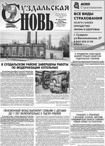 Газета основана 21 марта 1918 г. № 103 (12164) пятница, 25 декабря 2020 г. Общественно политическая газета Реклама В середине декабря в поселке Новый Суздальского района была введена в эксплуатацию новая полностью автоматическая котельная мощностью 4,0 мегаватта. Котельная была построена взамен старой, построенной в семидесятые годы и изначально работающей на угле. Вместо старых отечественных водогрейных котлов, установили новые котлы и горелки импортного производства, модернизирована газорегуляторная установка, полностью заменена система водоподготовки. Установленное в котельной энергоэффективное оборудование позволяет в автоматическом режиме регулировать температуру теплоносителя в зависимости от температуры наружного воздуха, оперативно информировать диспетчерский персонал о возникновении нештатных ситуаций, а также улучшить качество предоставляемых населению услуг. Объект обеспечивает теплом 29 жилых домов, детский сад, предприятия, организации и магазины, расположенные в поселке. Строительство котельной осуществлялось в рамках районной программы «Модернизация объектов коммунального хозяйства» за счет средств: фонда содействия реформированию ЖКХ, областного и районного бюджетов, а также средств концессионера - ООО «Владимиртеплогаз», ее стоимость составила 16 млн. руб. Это завершающий объект в программе Модернизация и перевооружение генерирующих мощностей в системе теплоснабжения Суздальского района. Работы по этой программе были начаты в 2009 году и в этом году завершены. Примечательно, что котельная вышла на полную мощность в праздничный день - День энергетика. Фото М. Пахомовой. В СУЗДАЛЬСКОМ РАЙОНЕ ЗАВЕРШЕНЫ РАБОТЫ ПО МОДЕРНИЗАЦИИ КОТЕЛЬНЫХ В соответствии с Указом Президента РФ Пенсионный фонд России беззаявительно перечислит единовременную выплату родителям, усыновителям, опекунам и попечителям детей до 7 лет включительно, которая составит 5 тысяч рублей на каждого ребенка в семье. Новую выплату получат все семьи с детьми, которым по состоянию на 17 декабря 2020 года еще не исполнилось 8 лет. Особенностью новой выплаты станет то, что она будет выплачена по принципу “социального казначейства”: за ней не надо никуда обращаться, поскольку Пенсионный фонд беззаявительно оформит и перечислит средства на основе принятых весной и летом решений о выплатах на детей. Таким образом, родителям, усыновителям и опекунам, которые в этом году получили ежемесячную выплату на детей до 3 лет или единовременную выплату на детей от 3 до 16 лет, дополнительная выплата будет предоставлена в декабре автоматически, подавать новое заявление не нужно. Заявление понадобится только в том случае, если ребенок в семье появился после 1 июля, либо родители не обращались ни за одной из выплат на детей, предоставлявшихся Пенсионным фондом в течение года. В этом случае родителям необходимо указать в заявлении реквизиты банковского счета, на который будут перечислены средства. На это есть больше трех месяцев – соответствующие заявления принимаются до 1 апреля. Заявление также понадобится, если у родителей, которые уже получали выплаты на детей, был закрыт банковский счет. Подать заявление на выплату можно в личном кабинете на портале Госуслуг или в клиентских службах Пенсионного фонда. В помощь родителям на сайте Пенсионного фонда размеще
