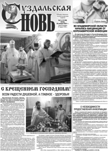 Газета основана 21 марта 1918 г. № 3 (12168) среда, 20 января 2021 г. Общественно политическая газета Богоявление Господне, Крещение Иисуса Христа празднуется 19 января как один из великих двунадесятых праздников. Ему предшествует Крещенский Сочельник - канун Богоявления и Крещения. Таинство Крещения - это источник нашей духовной жизни, очищение духа нашего. В этот день все крещенные именинники, ибо отныне им дан ангел-хранитель. Праздник Крещения называли еще и водосвятием, т.к. накануне происходило освящение воды в храмах, а в самый день праздника освящались и естественные водоемы - реки, озера, для чего в них делалась прорубь - иордань. Крещенская вода называется Православной Церковью великой Агиасмой, т.е. великой святыней. Она употребляется для окропления храмов и жилищ, предохраняет от болезней. Находились смелые люди, которые верили, что купание в этот день смывает все грехи, а простудиться в священной воде невозможно. 18 января, в день Навечерия Богоявления, по окончании Божественной литургии в Христорождественском соборе Богородице-Рождественского монастыря города Владимира митрополит Владимирский и Суздальский Тихон совершил чин Великого освящения воды и окропил всех присутствовавших Великой Агиасмой под пение церковным хором тропаря празднику Богоявления. Великая Агиасма в переводе с древнегреческого – «святыня». Под влиянием Иерусалимского устава с XI–XII веков освящение совершается два раза: и в Сочельник, и непосредственно в сам праздник Богоявления. Оба освящения проходят одинаковым чином, поэтому вода, освященная в эти дни, ничем не отличается друг от друга. Освящение называется великим благодаря особой торжественности обряда, насквозь пронизанного воспоминанием евангельских событий, которые стали не только прообразом таинственного омовения грехов, но и действительным освящением самого естества воды через погружение в нее Бога во плоти. С КРЕЩЕНИЕМ ГОСПОДНИМ! Чин Великого освящения воды совершает митрополит Владимирский и Суздальский Тихон. Чин Великого освящения воды совершает иеромонах Арсений. По поручению Президента России Владимира Путина во всех регионах страны, в том числе во Владимирской области, 18 января началась массовая вакцинация от новой коронавирусной инфекции. Директор Департамента здравоохранения Елена Утемова сообщила, что Владимирская область готова к началу массовой вакцинации. «Вакцина «Спутник V» доказала свою высокую эффективность и безопасность. Алгоритм проведения вакцинации разработан, весь персонал обучен», – подчеркнула глава медицинского ведомства. До конца января область получит в общей сложности 52 тысячи доз вакцины, что позволит прививать от коронавируса самые широкие слои населения. Вакцина «Спутник V» является двухкомпонентной. Это значит, что для формирования надёжной защиты организма иммунизацию необходимо пройти дважды. Второй компонент вводится через 21 день после первой прививки. Для удобства жителей Владимирской области запись на вакцинацию открыта на портале электронной регистратуры Владимирской области lk.miac33.ru, а с 25 января запись будет возможна через личный кабинет Единого портала госуслуг. Кроме того, записаться на прививку можно будет и по Единому номеру 122 по вопросам новой коронавирусной инфекции. Департамент здравоохранения обращает внимание жит